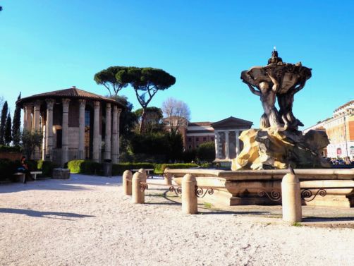 Un peu plus loin, nous arrivons au Foro Boario, un très ancien lieu de marché. On y trouve le petit temple de Portunus, le temple rond et l’Arc de Janus. Juste en face se trouve aussi l’église Santa Maria in Cosmedin.