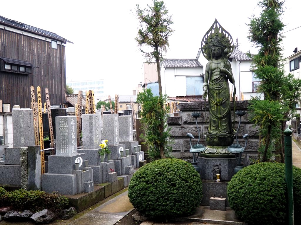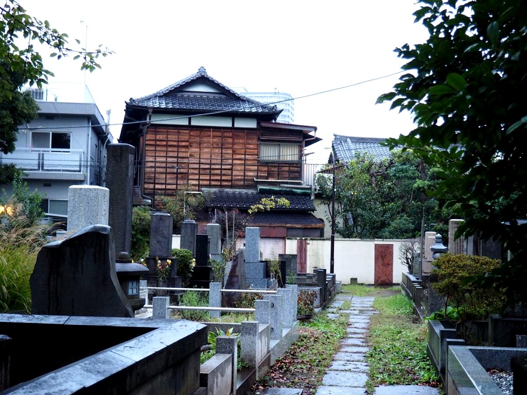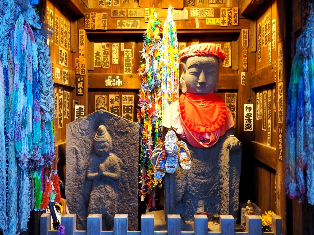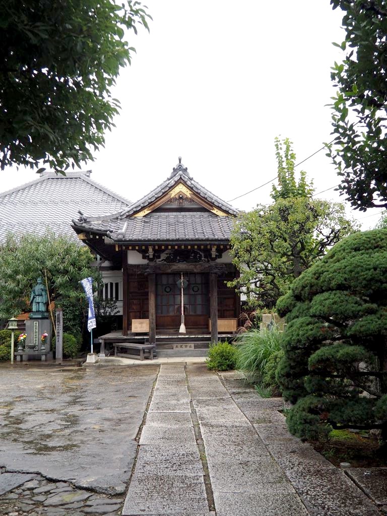 On arrive d’abord via un quartier résidentiel hyper calme (mais tout Tokyo est relativement calme pour une ville de cette taille à part Harajuku et Shibuya !), puis on se balade dans le quartier autour du temple de Gyokurin-ji. Si on avait trouvé qu’il y avait pas mal de temples à Ueno, ici c’est la folie : des temples bouddhistes partout !
