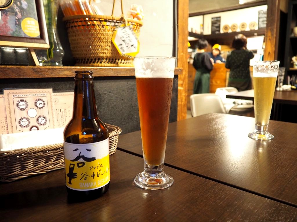 Ensuite, on a continué la balade un peu au hasard, car avec la pluie on avait pas le courage d’aller jusqu’à d’autres temples que j’avais repérés, mais ça nous a permis de tomber sur une petite pépite, puisque juste à côté du Shitamashi Museum Annex (un vieux magasin d’alcool qui a été préservé et qui est aujourd’hui une sorte de « mini musée » gratuit), on a découvert par hasard le Yanaka Beer Hall, un endroit vraiment super, où on peut acheter des produits locaux, manger un bout ou simplement déguster une bière locale. Le bar se situe dans une ancienne maison, l’atmosphère (jazzy) est très sympa !