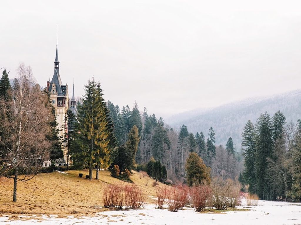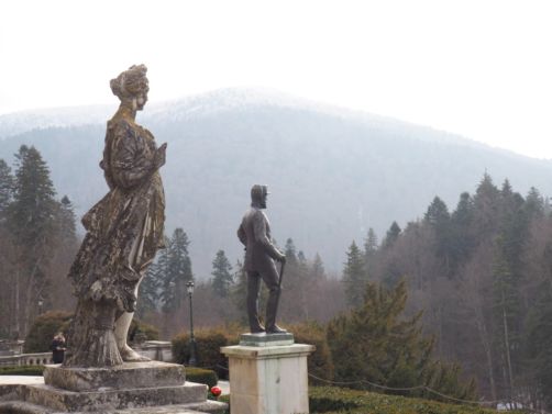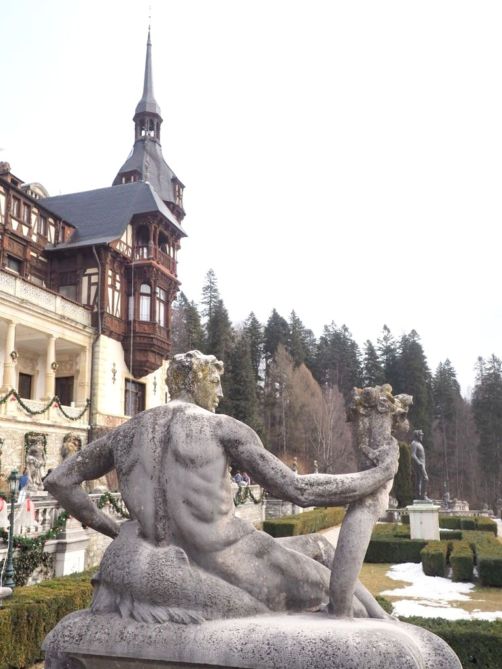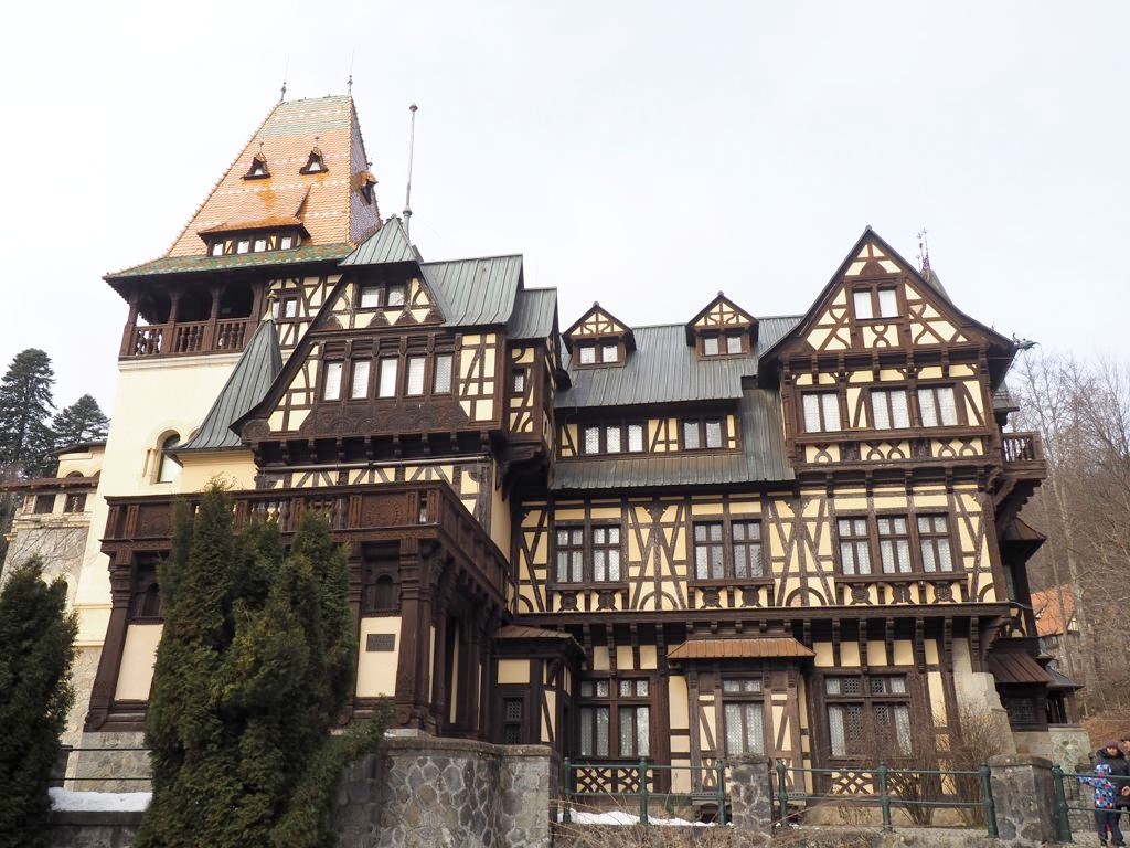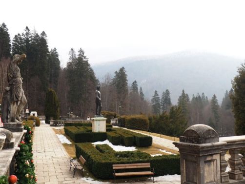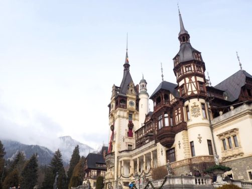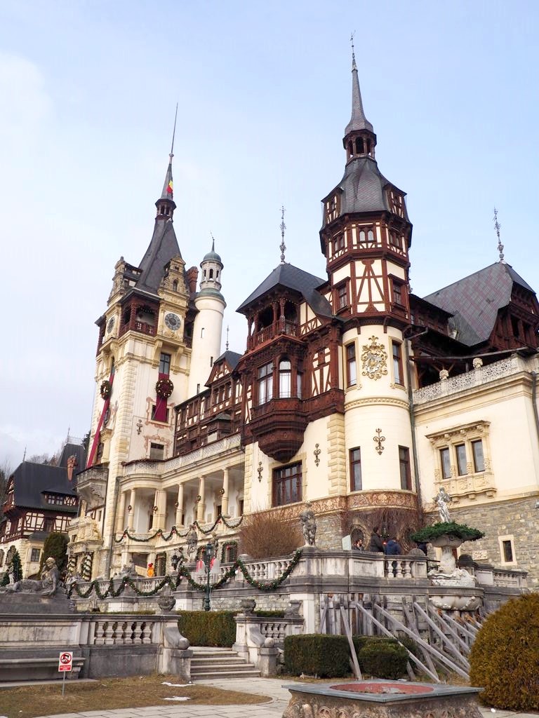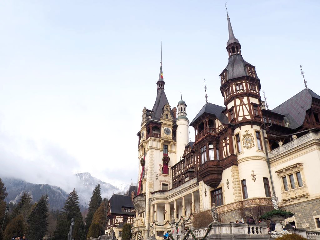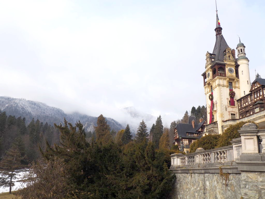 Notre premier arrêt de la journée fut le château de Peles, qui n’est pas encore techniquement en Transylvanie, mais dans la région de Valahia, et plus précisément dans la ville de Sinaia, qui est aussi une station de ski (mais nous ne sommes pas montés aussi haut !). Sinaia est appelée la « Perle des Carpathes », et on comprend vite pourquoi. Les alentours sont splendides !