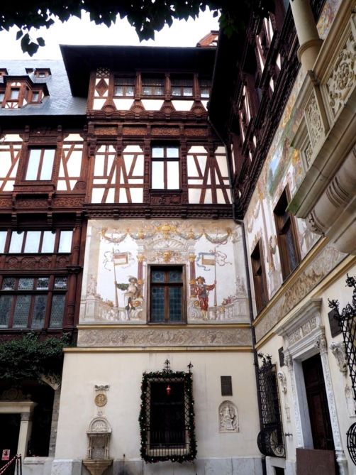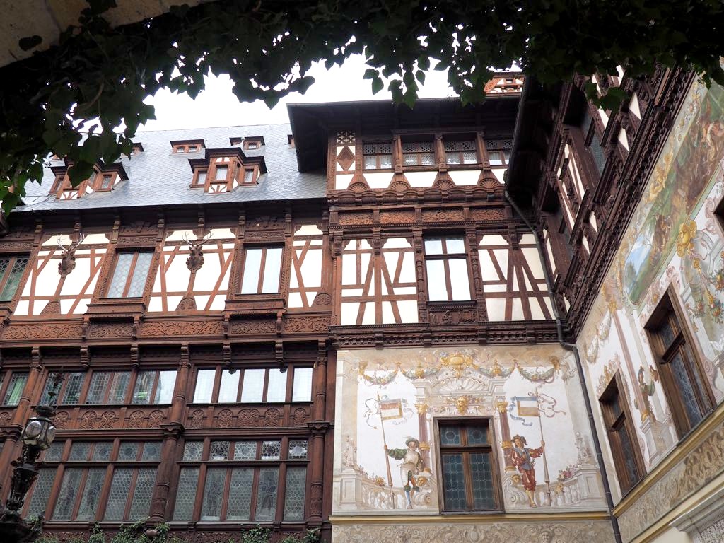 Le château de Peles est un ancien château royal, qui se dresse au milieu des montagnes. C’est un mélange de plusieurs styles différents, et l’intérieur est assez chargé mais c’est vraiment magnifique. La visite guidée du château nous permet de découvrir une petite partie des salles, toutes décorées dans des styles différents. On retrouve même une oeuvre de Klimt dans le théâtre du château !