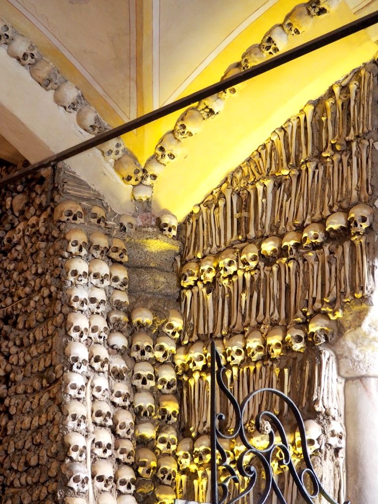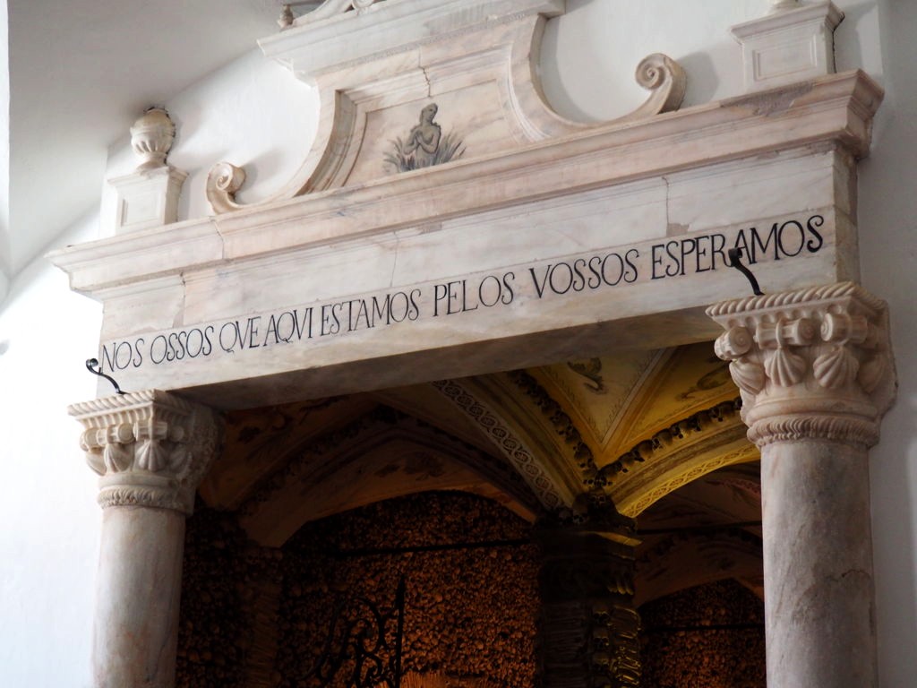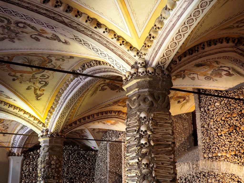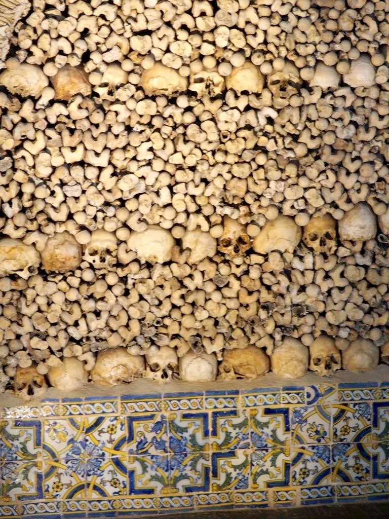 Un peu plus loin, nous arrivons à l’Eglise de São Francisco, qui est surtout connue pour son impressionnante Chapelle des Os, construite avec les crânes et les os des anciens moines du monastère !