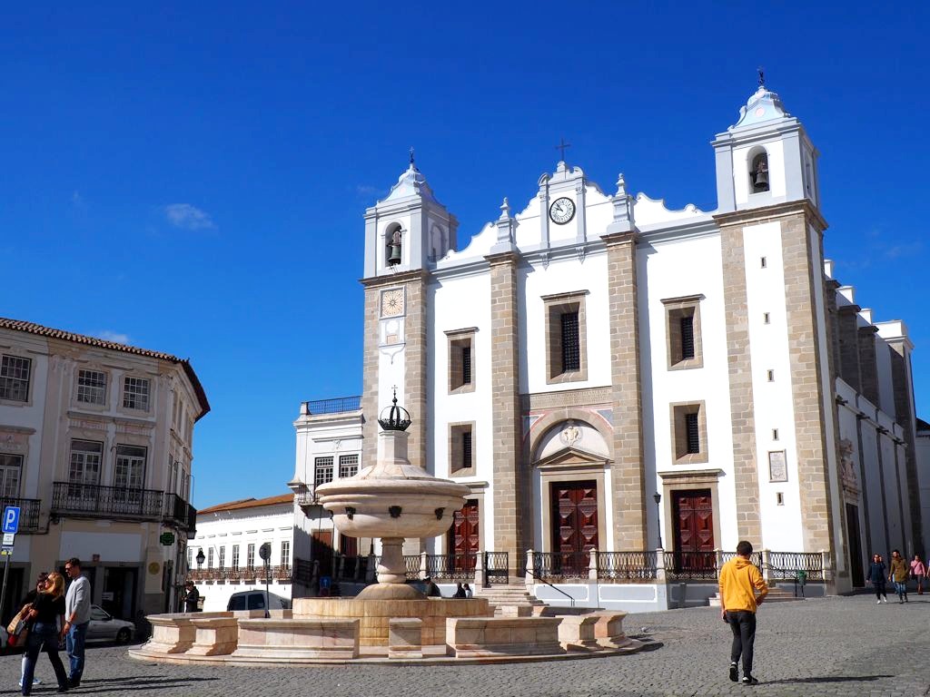 En bas de la rue se trouve la place centrale d’Evora : la Praça do Giraldo. Avec ses terrasses, c’est l’endroit parfait pour prendre un verre au soleil quand il fait beau ! Nous rentrons brièvement dans l’Eglise de Santo Antonio avant de continuer la visite.