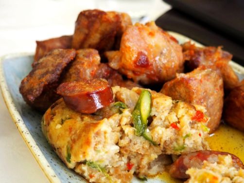 Pour découvrir la gastronomie de l’Alentejo (et ses vins), direction le restaurant Dom Joaquim. L’incontournable dans la région, c’est le porc noir, l’équivalent portugais du « Pata Negra » puisque ici aussi les porcs sont élevés dans les champs de chênes-lièges et se nourrissent de leurs glands, c’est ce qui donne cette viande aussi particulière. Ici, le porc est souvent accompagné de « migas de paõ », un accompagnement très particulier à base de pain, auquel peuvent être mélangés différents ingrédients et notamment les asperges, autre spécialité locale.