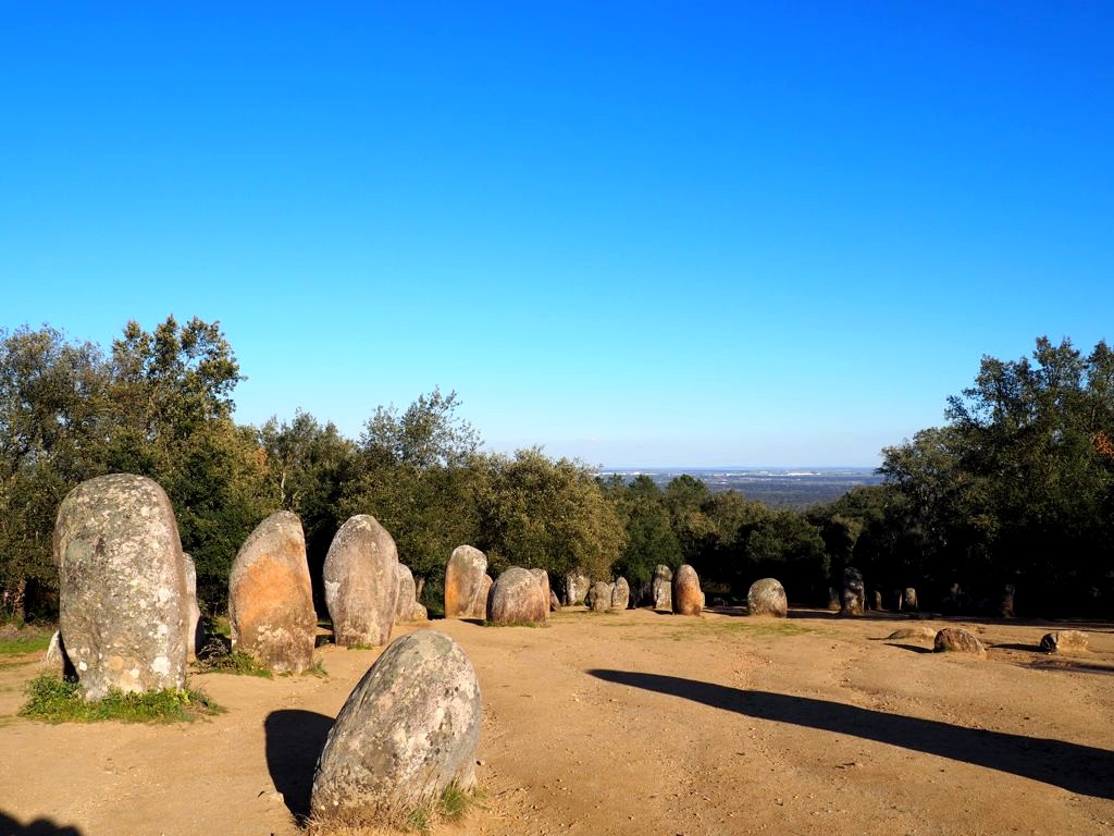 Nous quittons ensuite le centre d’Evora pour découvrir les alentours et notamment un site impressionnant : le Cromlech des Almendres, qui est le plus grand complexe mégalithique de la Péninsule Ibérique, et l’un des plus importants d’Europe.