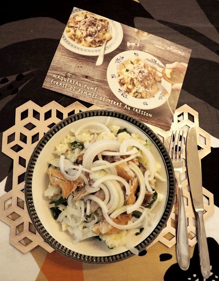- maquereau fumé, écrasé de pommes de terre au cresson.