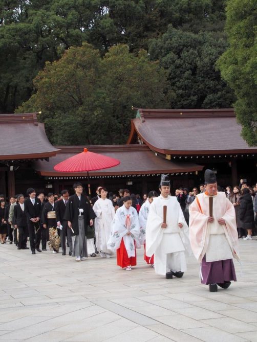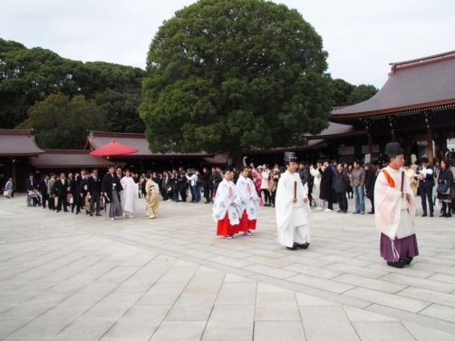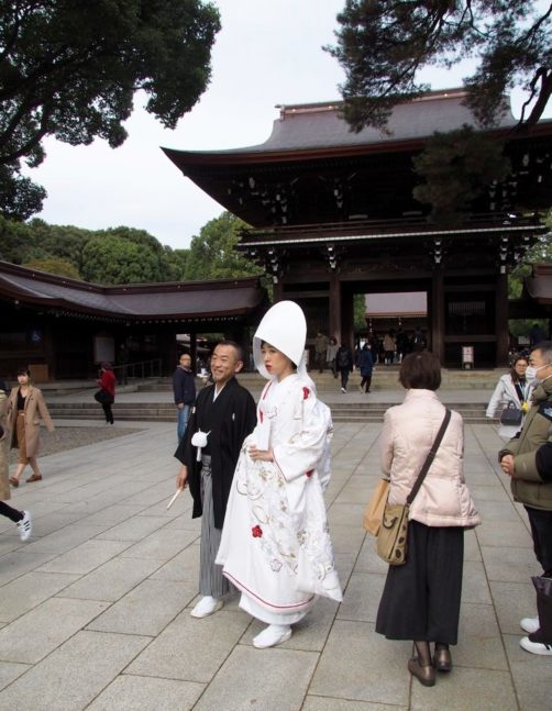 S’il fait beau, vous pouvez aussi faire un tour juste à côté dans le grand parc de Yoyogi Koen qui abrite le temple Meiji. Le weekend, il y a beaucoup d’animations dans et autour du parc, et vous avez de grandes chances d’apercevoir une cérémonie de mariage traditionnelle.