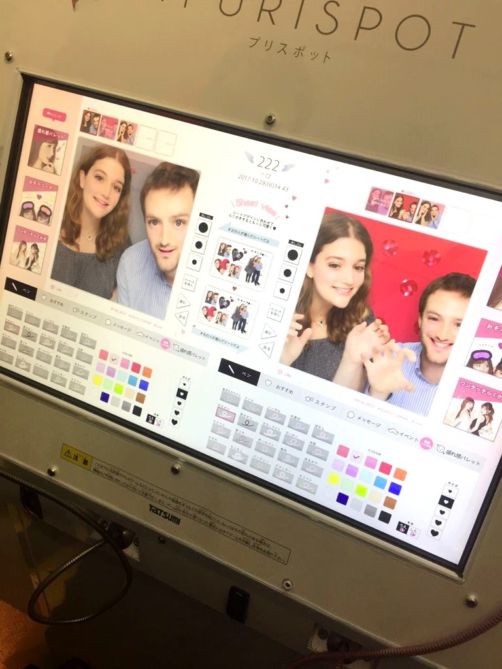 Bref, c’est vraiment drôle à condition d’arriver à l’utiliser ! Car dans la plupart des machines, tout est en japonais. On a donc erré un certain temps avant de trouver une machine qui nous semblait pas trop compliquée. Et on a quand même raté notre premier test ahah ! En gros, il y a souvent deux parties : vous devez d’abord aller faire vos photos dans la cabine photo, puis aller dans la salle de retouches pour choisir votre photo et la modifier, et puis enfin attendre votre photo !