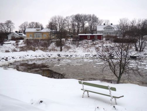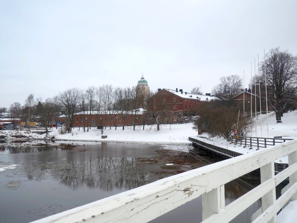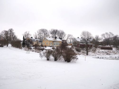 Sur la première île, nous passons de jolies maisons en bois colorées avant d’arriver au quai de Tykistölahti. Le passage entre les deux îles est vraiment charmant sous la neige !