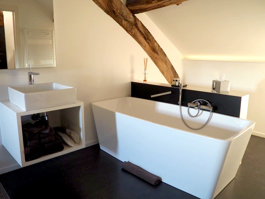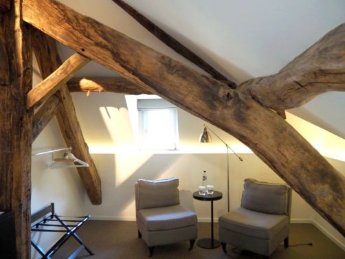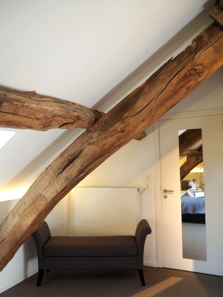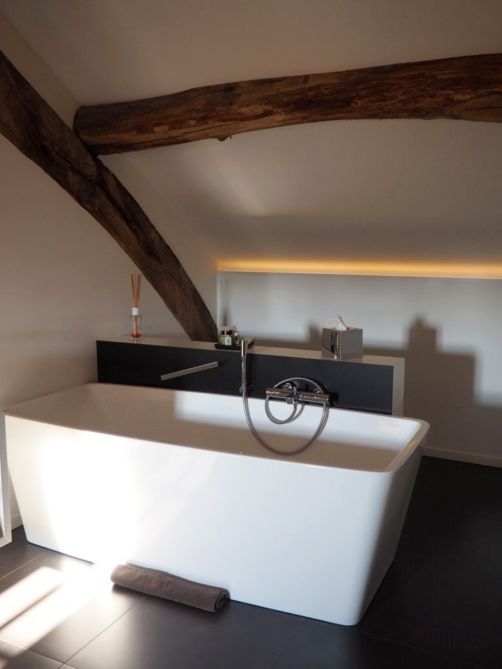 Il faut dire que le Château de Grandvoir ne possède que 8 chambres, l’accueil est donc un des autres avantages de cet endroit chaleureux. On nous a escorté jusque dans notre chambre, la chambre Bonaparte, une spacieuse chambre au dernier étage avec poutres apparentes et une jolie baignoire (à noter que c’est vraiment une chambre d’amoureux, puisque la baignoire se trouve en dehors de la salle de bain – mais moi je trouve ça vraiment sympa !).