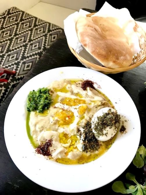 On s’est laissé tenter par un assortiment de « mazze » (préparations à base de légumes bien relevées) et un plat de houmous à partager… Ça ne rigole pas avec la quantité ici, donc c’était bien suffisant pour deux personnes. Le meilleur houmous de ma vie, et pour un tout petit prix en plus de tout ! Réservation plus que conseillée (possible également de prendre à emporter).