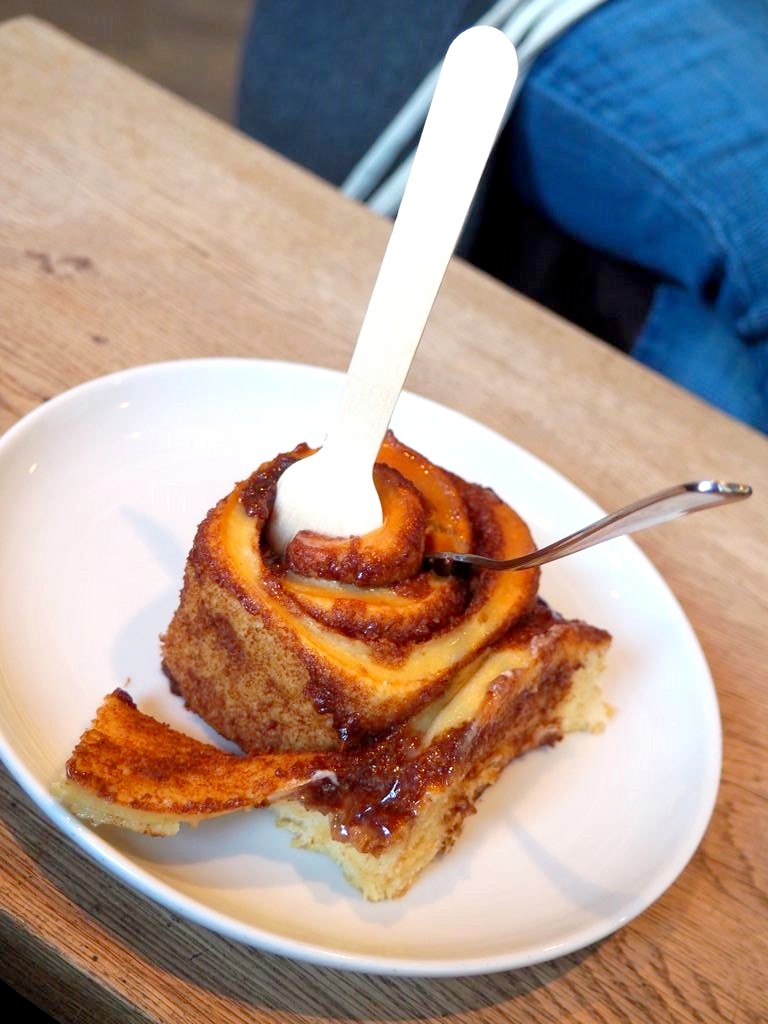 Je dois vous avouer quelque chose, je ne suis pas la plus grande fan au monde des pâtisseries à la cannelle ! Quelle fut ma surprise quand j’ai dégusté chez Zeit für Brot (petite boulangerie/pâtisserie avec quelques tables à l’intérieur) le meilleur roulé à la cannelle (Zimtschnecke en allemand) de ma vie ! Encore chaud, moelleux à souhait, le cœur tout juste cuit…