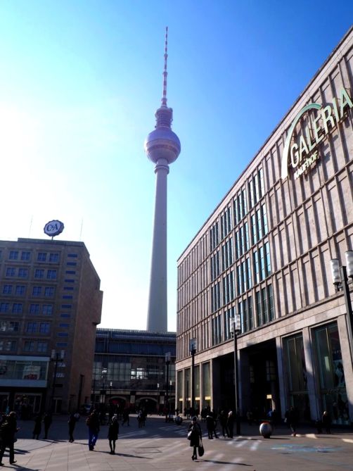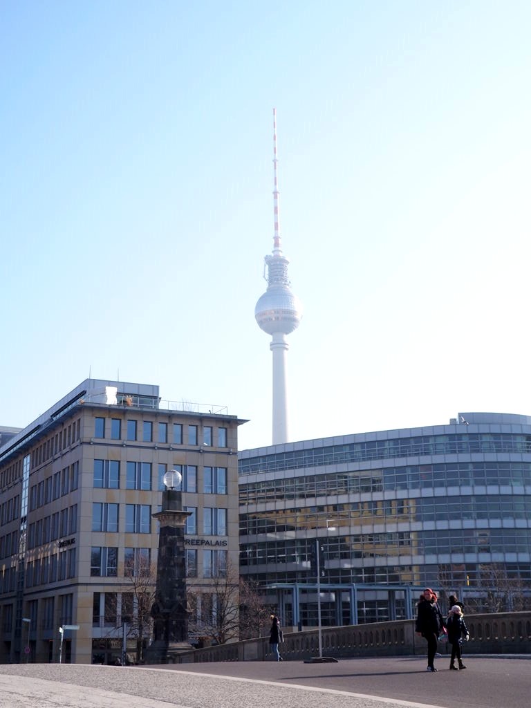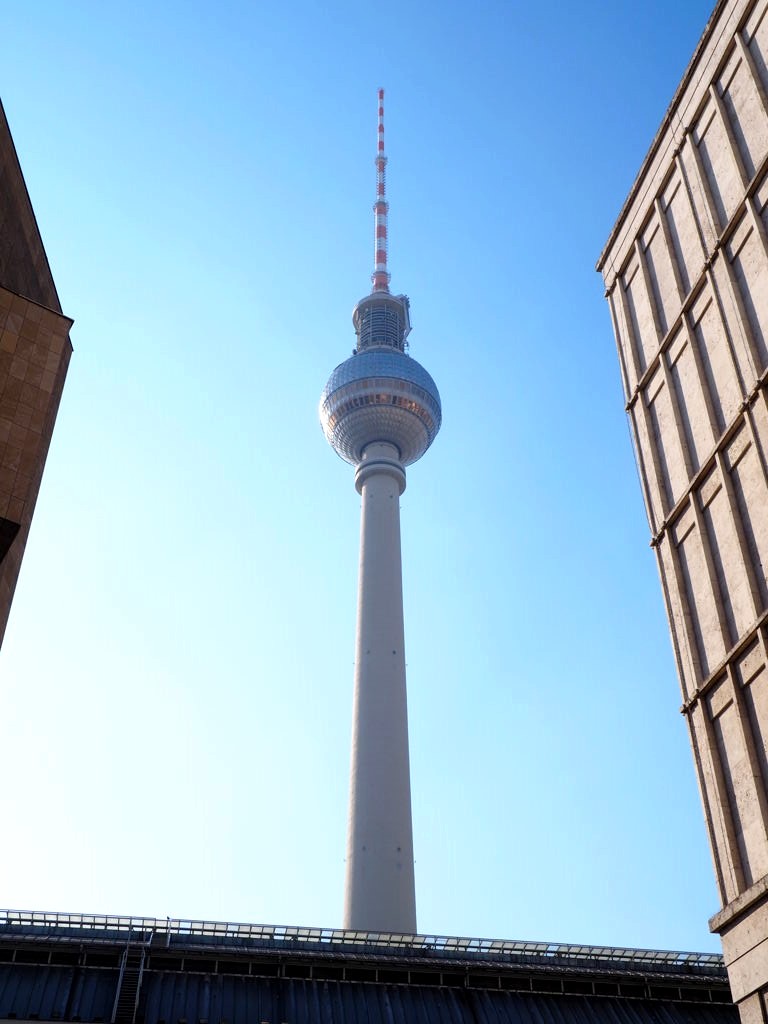 Alexanderplatz se situe aussi aux pieds d’un autre endroit très touristique à Berlin, la Tour de la Télévision, le point de repère facile lorsqu’on se déplace dans la ville, avec ses 368 mètres de haut. Il s’agit d’ailleurs du plus haut bâtiment ouvert au public en Europe… Vous pouvez y monter pour la vue panoramique sur la ville, ou pour manger au restaurant tournant de la tour ! Nous n’avons fait ni l’un ni l’autre, une autre bonne raison pour revenir !