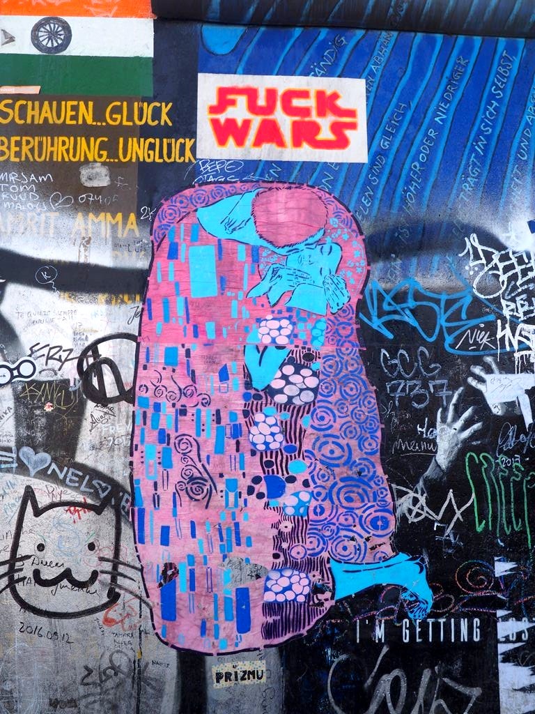 Plus de 100 artistes internationaux ont peint les oeuvres de street art qui décorent le côté est du mur sur plus d’un kilomètre le long de la Spree. La plus célèbre des fresques est le Baiser de l’amitié entre Erich Honecker et Léonid Brejnev réalisée par Dmitri Vrubel.