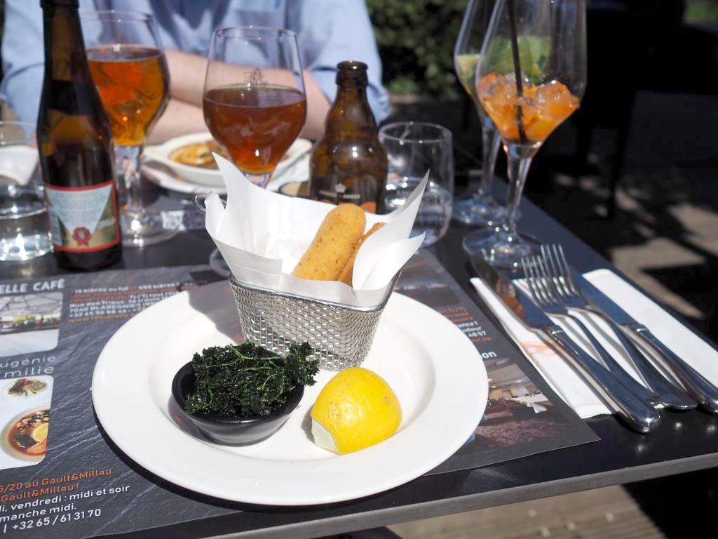 À la carte, une cuisine de brasserie simple et gourmande, avec des grands classiques de la cuisine belge et française. Et l’assurance que tout soit fait maison donc, des pains aux terrines, jusqu’aux frites coupées main.