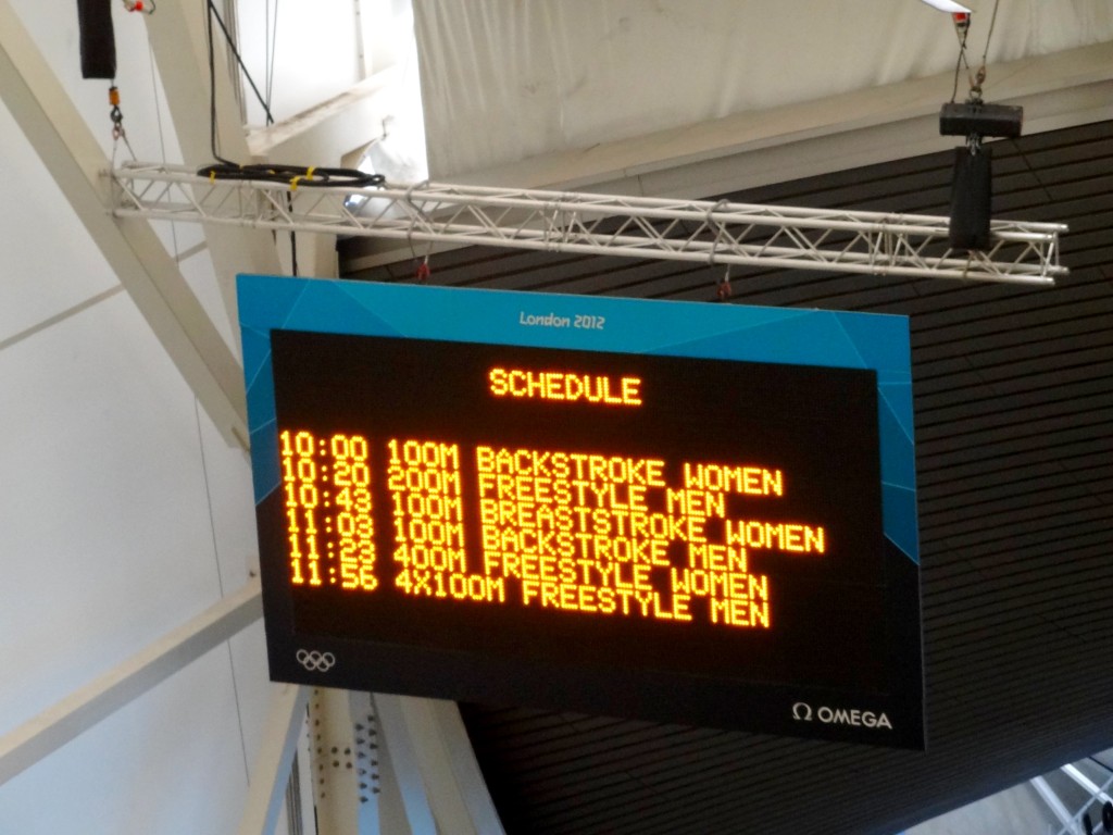 Après un lever aux aurores pour prendre le premier Eurostar du jour à Bruxelles (pas facile!), nous avons tout d’abord été accueilli par les deux accompagnateurs Delhaize pour un petit briefing de la journée. Au programme: nous allons voir la compétition de natation à l’Aquatics Center, et puis free time dans Londres! Chouette, ça faisait longtemps (quelques mois, déjà de trop!).