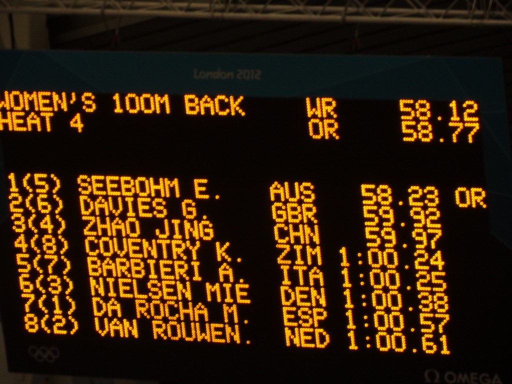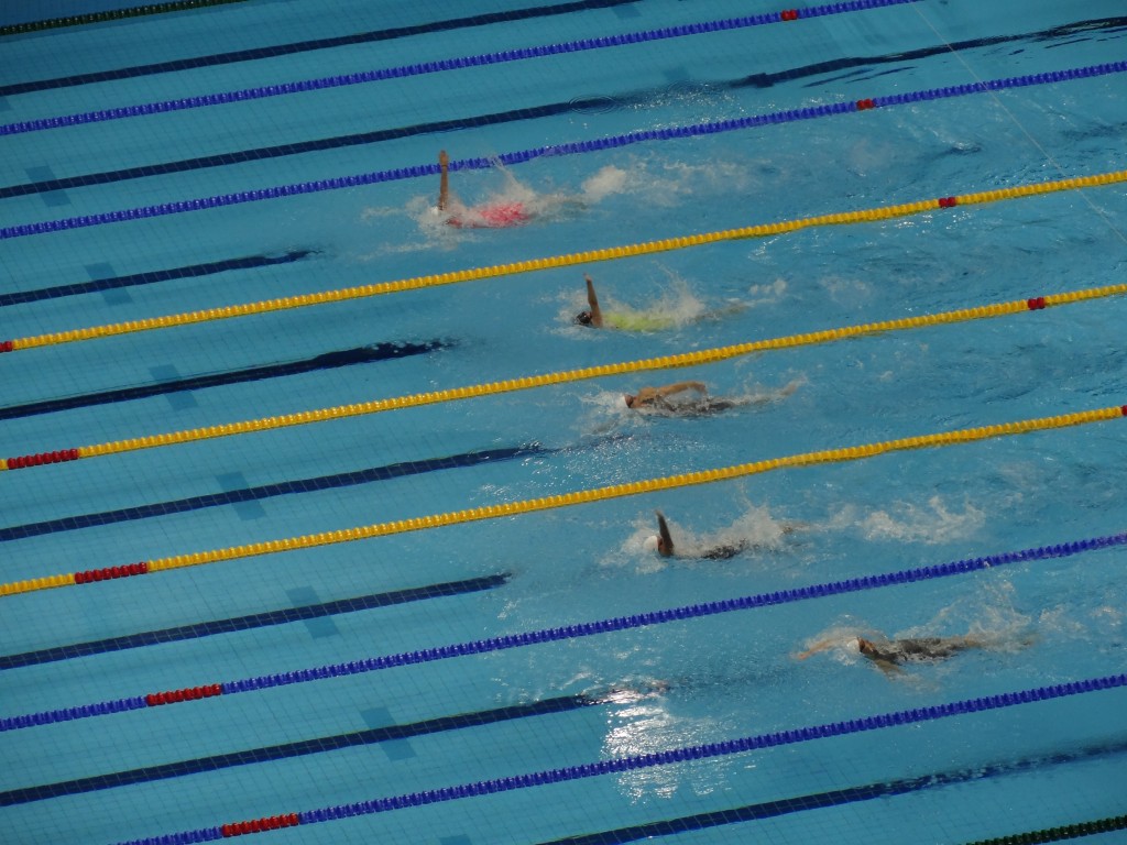 Les épreuves défilent, tout est parfaitement timé, et on se prend vite au jeu! Comme il n’y a pas des masses de nageurs belges, on gette plutôt le possible record mondial ou olympique… Qui arrive assez vite! Yeah! Assister à un record olympique: check!!