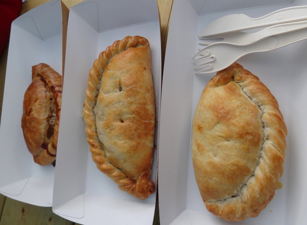 Deux bonnes heures plus tard, fin de l’épreuve et looongue file pour sortir de là… ça y est, les millions de spectateurs du jour se remarquent enfin…! Le temps britannique nous rattrappe aussi: il pleut! On se dirige ensuite vers le coin bouffe… après une longue hésitation entre le McDo géant et recyclable créé pour l’occasion (Mc Do est quand même le « restaurant officiel des J.O. »… no comment!) et les autres petits snacks de bouffe British, on craque pour le stand des tourtes! Plus beaucoup de choix au final (dommage pour le chicken chorizo, je tenterai ça moi même!), les stocks n’ont pas l’air de suivre vraiment. On finit donc avec une Cornish pastry, une tourte à l’agneau-menthe (mmh, c’est quand même bon!) et une autre aux porc-pommes.