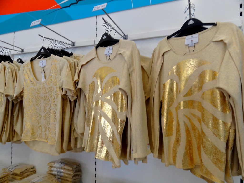 J’adore les tenues « Team GB », designées apparemment par Stella Mc Cartney (ça explique tout!), dont on retrouve également quelques tenues spécialement crées pour l’occasion dans le coin des vêtements pour femmes. Mais bon, n’étant pas ce qu’on peut appeler très sportive, je ne fais qu’admirer ces belles tenues sportives, sachant très bien que je ne les mettrais probablement jamais! Finalement, on sort du shop avec une tasse seulement…