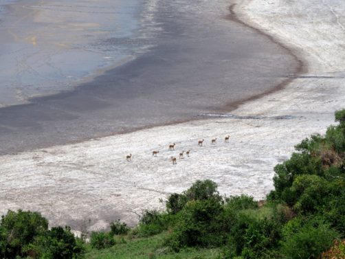 L’après-midi, l’excitation remonte puisque c’est l’heure de notre deuxième safari sur l’eau ! Sur la route, nous passons encore quelques lacs cratères où les animaux s’abreuvent en cette chaude après-midi…