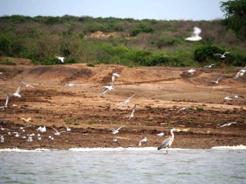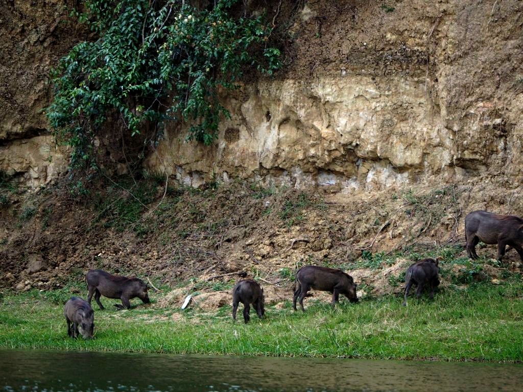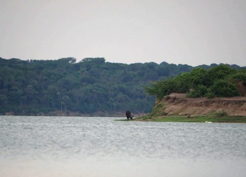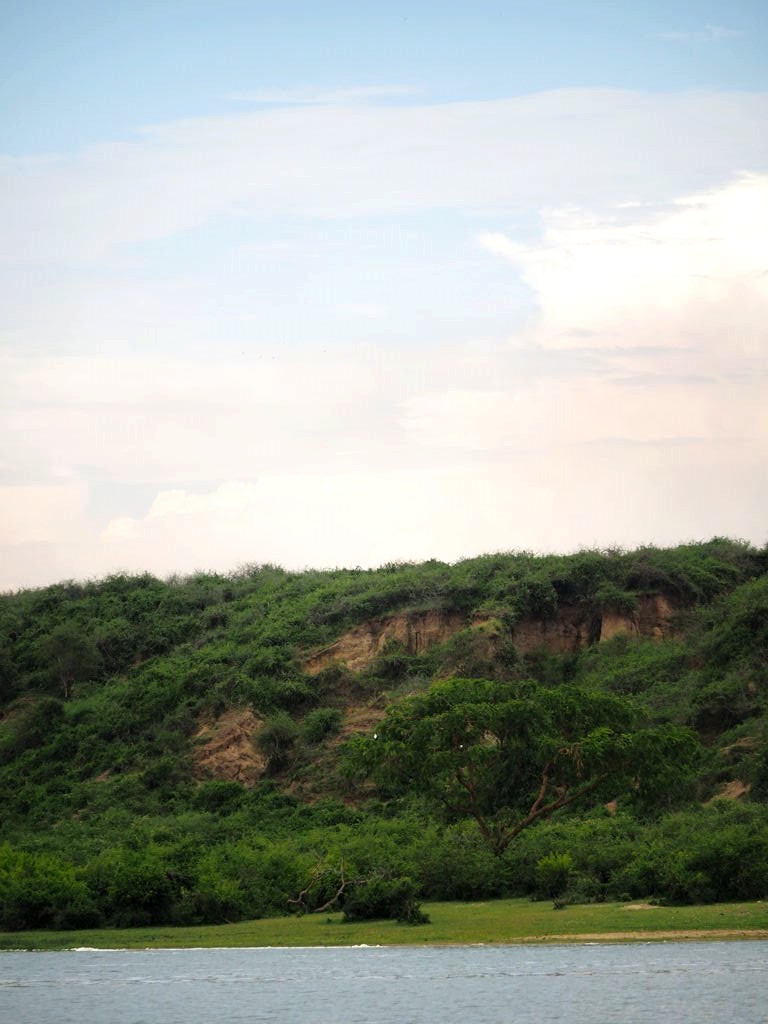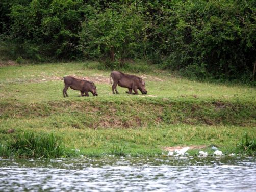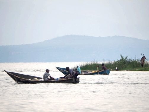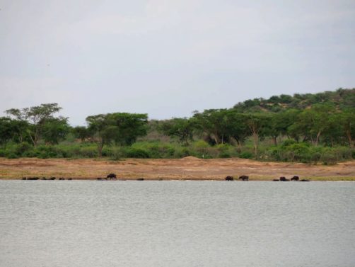 Après avoir remonté le Nil à Murchison Falls, nous naviguons cette fois-ci sur le Kazinga Channel ou Canal de Kazinga, le canal reliant le Lac Edouard et le Lac George, les deux grands lacs entre lesquels s’étant le Parc National de Queen Elizabeth, et qui marquent la frontière avec le Congo.