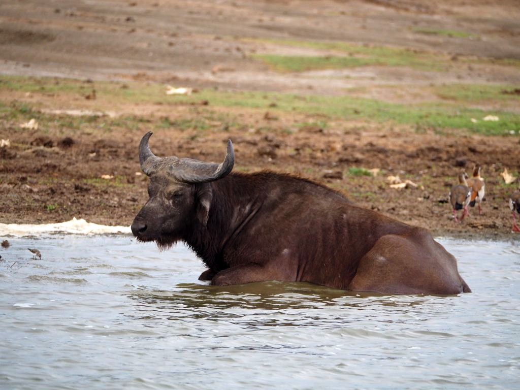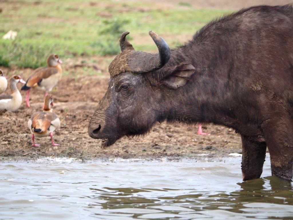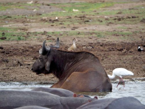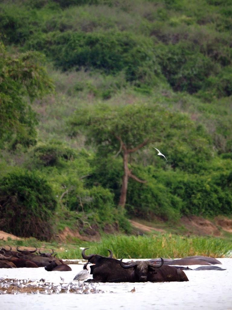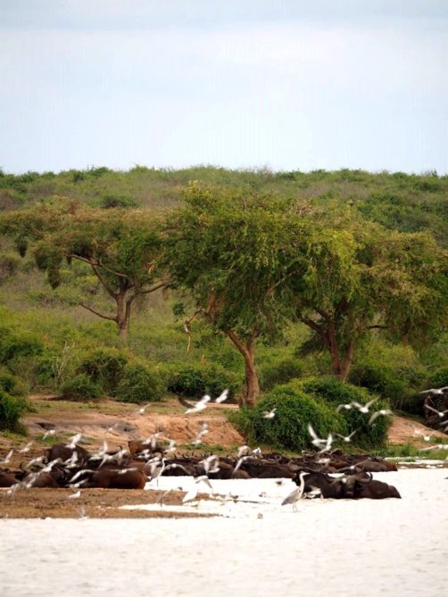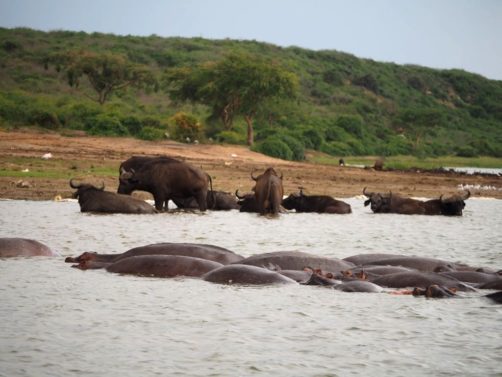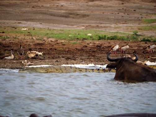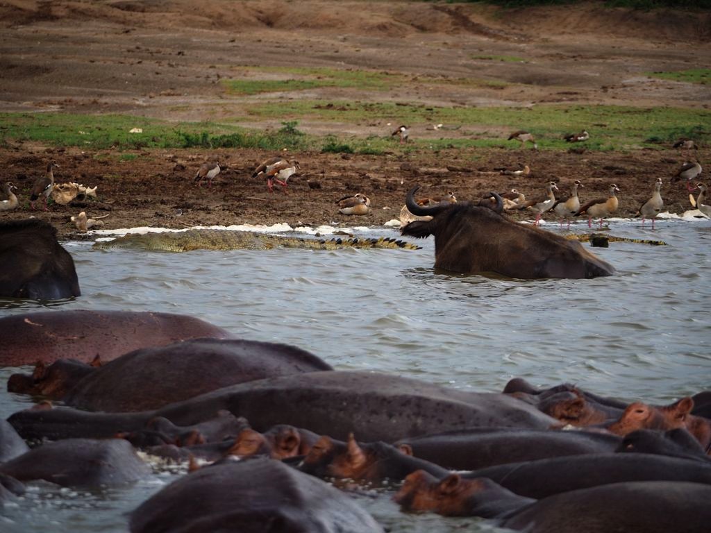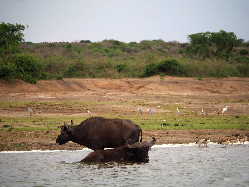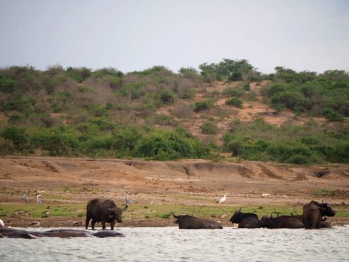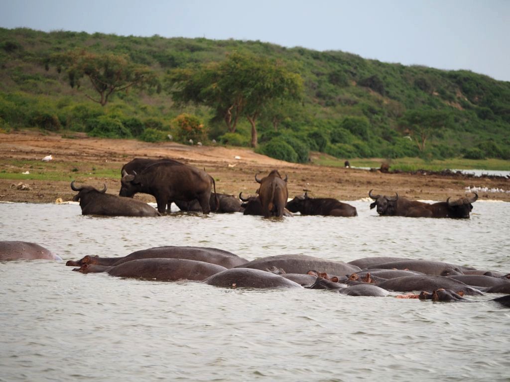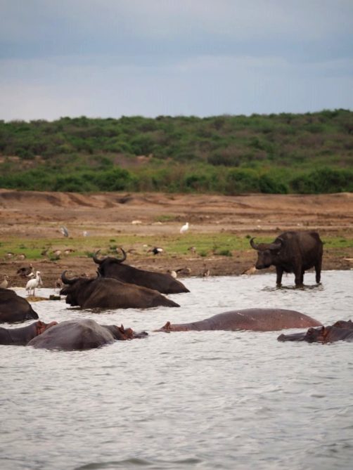 C’était difficile de faire aussi bien que ce que nous avions vécu sur le Nil, et même si ce tour en bateau fut un peu moins riche en animaux, nous avons quand même vu plein de buffalos, de crocodiles et d’hippos, tous en train de boire l’eau du canal aux mêmes endroits ! Une cohabitation assez étonnante, d’autant plus qu’il est courant d’y voir aussi des éléphants parmi eux (qui étaient bien cachés ce jour-là par contre).