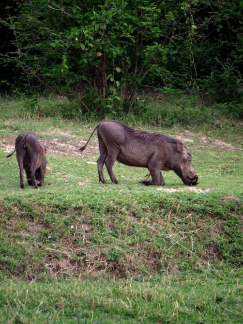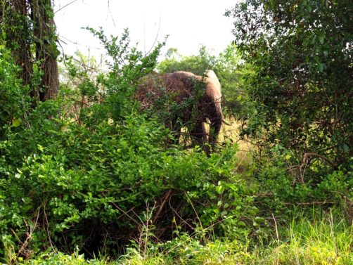 Pouvoir prendre son temps pour les observer est un vrai luxe. Un employé de l’hôtel nous informera d’ailleurs au petit-déjeuner qu’il y a des animaux face au lodge tous les jours, surtout le matin et en soirée. D’ailleurs, ils ont dû se protéger des dégâts régulièrement causés par les éléphants en installant un mur naturel en contrebas des lodges, car ceux-ci montaient avant régulièrement au village, et détruisaient tout sur leur passage. On leur ferait bien un câlin quand on les voit manger leur herbe avec une telle nonchalance, mais pourtant les éléphants peuvent être dangeureux, il ne faut pas l’oublier.