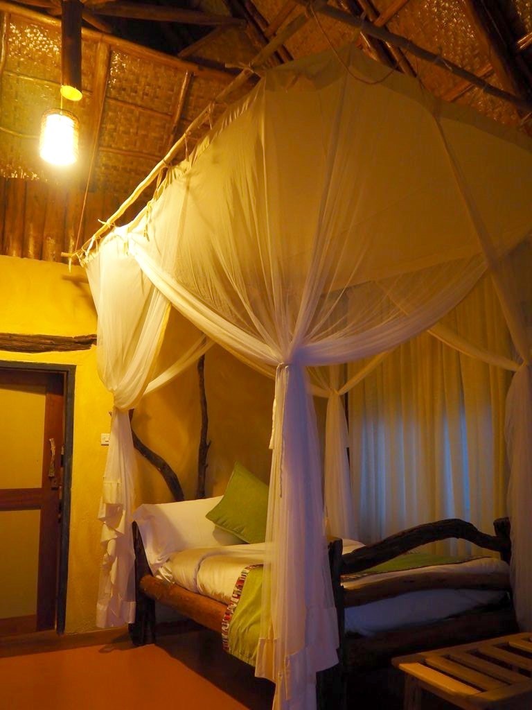 En découvrant où nous allions dormir, je suis restée bouche bée… C’est vraiment l’un des endroits les plus magiques où j’ai eu l’occasion de dormir ! Les lits en bois, la salle de bain colorée avec ses tissus typiques, et ce balcon qui permet d’observer à sa guise la savane et ses animaux… Oui, j’y serais bien restée plus longtemps…