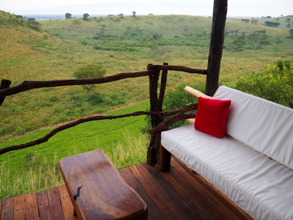 Pour notre première nuit au Parc National de Queen Elizabeth, nous avons séjourné dans le lodge qui fut mon gros coup de cœur de ce voyage, le Mazike Lodge, un tout nouveau lodge (qui a repris l’emplacement d’un autre lodge) avec une vue imprenable sur la savane en contrebas depuis le balcon de notre lodge tout confort.