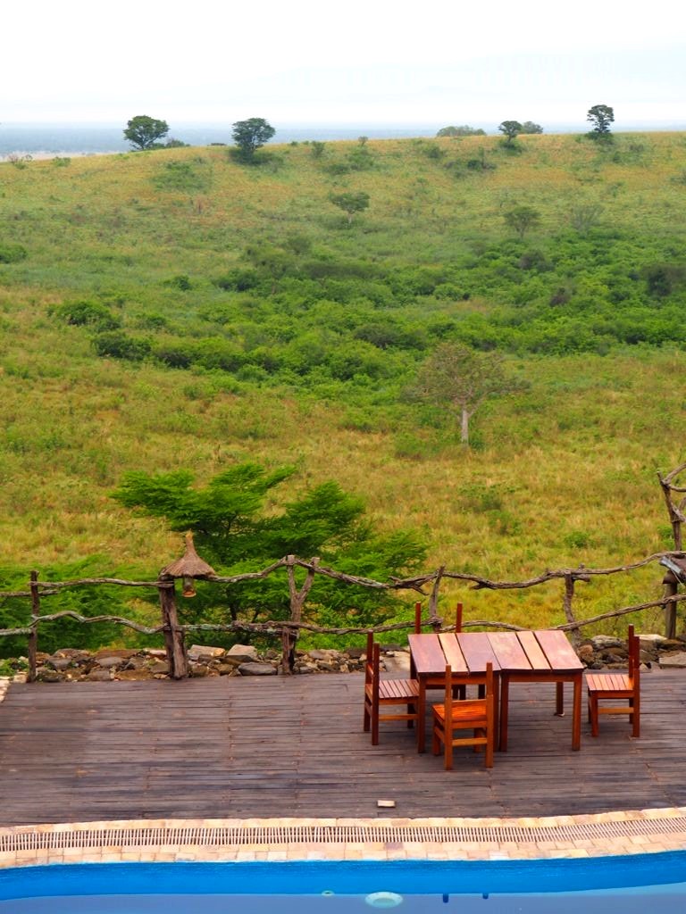 Puis la Twin Lakes Lodge, une magnifique lodge écologique (avec son propre jardin qu’ils utilisent pour leur restaurant) avec également une vue panoramique de dingue sur la savane. Et en plus, il s’agit d’une des moins chères que nous avons vu. Bon plan donc !