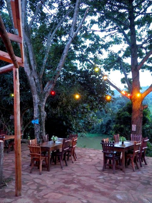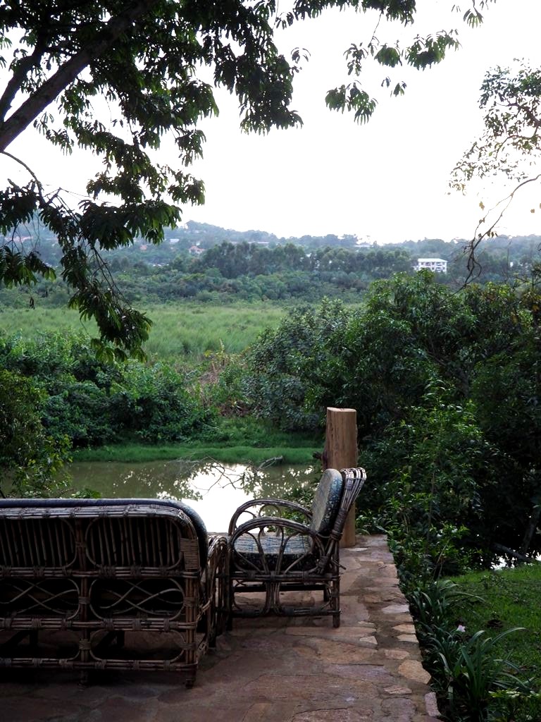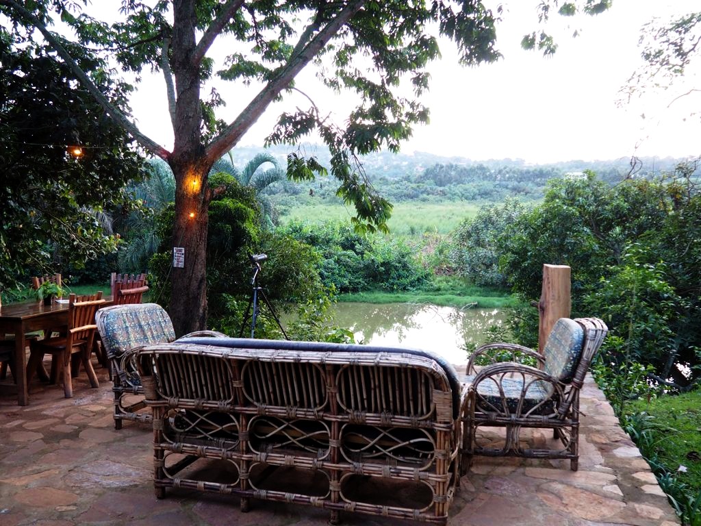 Le trafic étant imprévisible, nous partons bien à l’avance pour l’aéroport, en nous arrêtant au passage à Entebbe au ViaVia café d’Entebbe, le petit frère du café Bruxellois, tenu par un belge rencontré la veille à l’ambassade. Ici, il y a même un hôtel en plus du café ! C’est simple et décoré avec goût, un vrai petit coin de paradis face à la rivière, idéal pour une première ou dernière nuit au calme près de l’aéroport. On se pose dans les gros fauteuils et on profite avec un dernier jus frais et quelques tapas pendant que la nuit tombe. On ne veut pas partir !