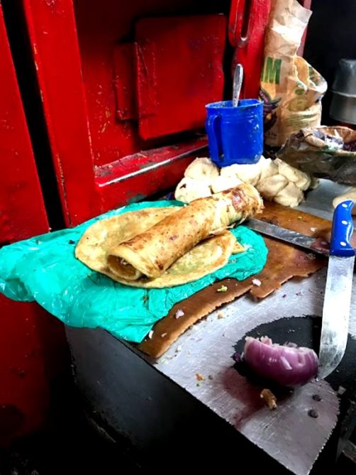 L’après-midi, notre guide nous emmène découvrir un des marchés de Kampala car je voulais absolument manger un « vrai » Rollex avant de repartir ! Pour rappel, le Rollex c’est LA spécialité street food ougandaise, il s’agit d’un chapati roulé avec une omelette dedans (« rolled eggs ») !