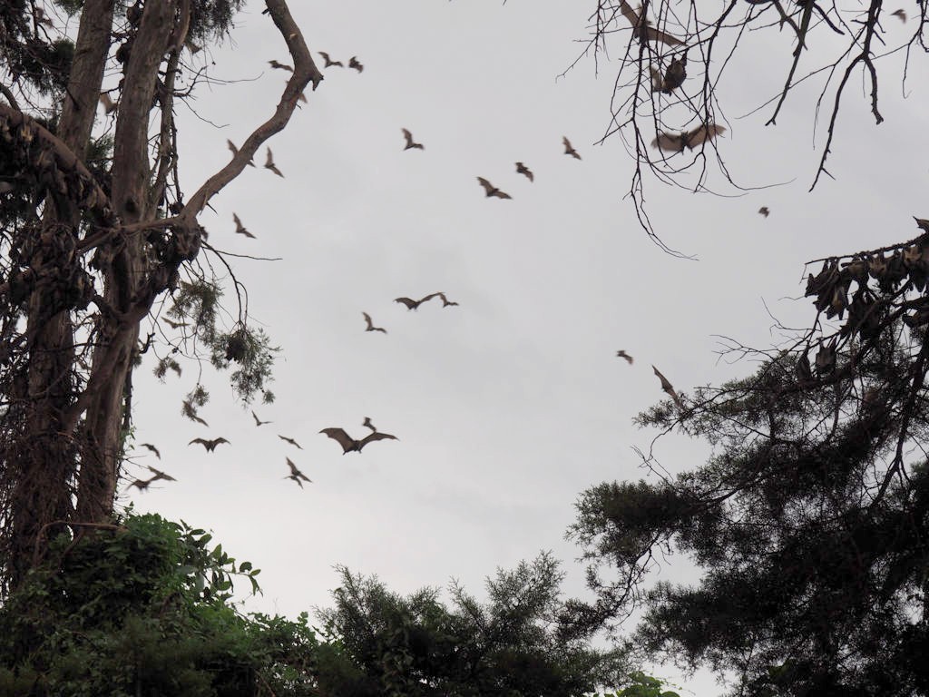 Nous quittons la forêt de Bwindi en étant salués par une énorme colonie de chauve-souris, volant d’arbre en arbre, en pleine journée ! Le spectacle est grandiose, mais j’avoue avoir un peu peur de sortir de la jeep !