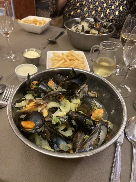 Ce nouveau restaurant situé sur la digue casse un peu les codes de Knokke. On le comprend tout de suite quand, à peine rentrés, on fait face à une kitschissime statue de buffle face à un panier de moules, la « mascotte » du bien nommé Buffalo Moules. A la carte, un mélange tout aussi étrange mais au final assez réussi : des moules (très bonnes) et une carte de viandes, avec notamment une partie barbecue/grillade (qu’on a pas encore testé). Ils proposent aussi plusieurs formules de menus vin compris, avec des prix étrangement bas pour Knokke (je ne sais pas si c’est pour le lancement ou si ça va durer comme ça…). Comme le resto est tout nouveau (2023), la déco est aussi très sympa et plutôt tendance.