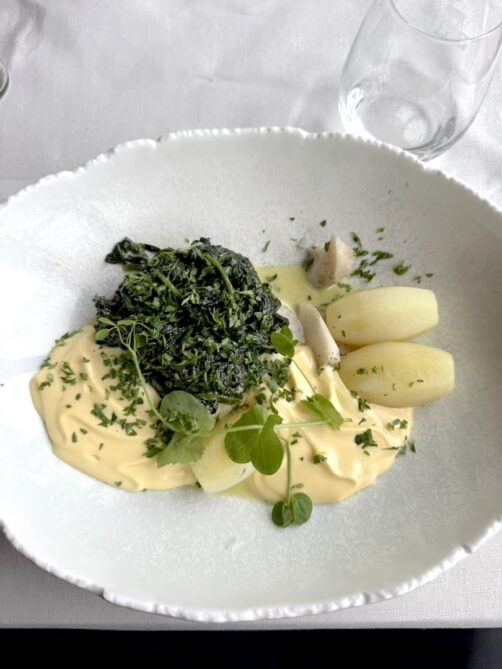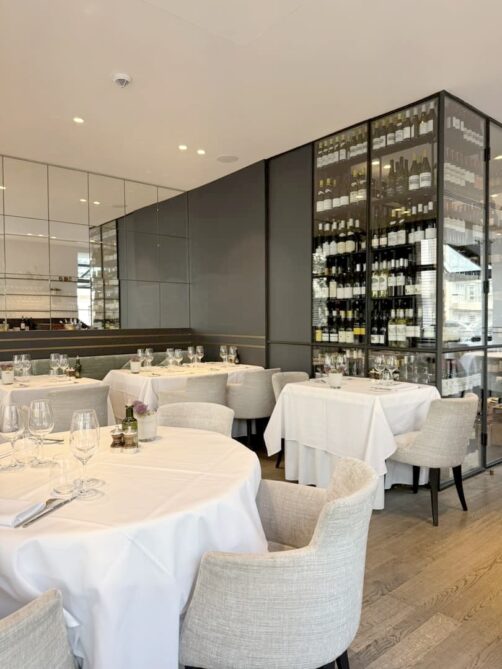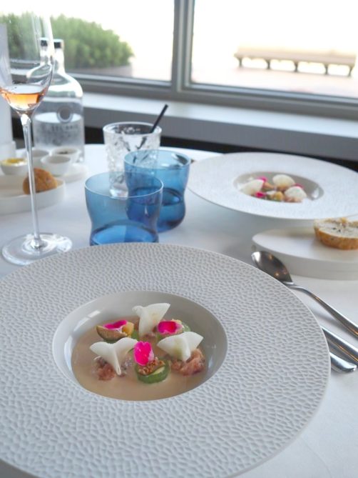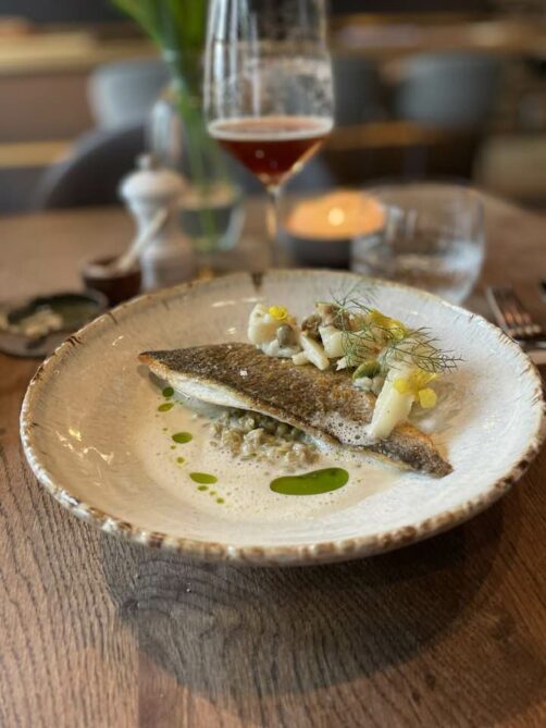 Le lunch 3 services du Sel Gril (sauf le dimanche et jours fériés) à 58€ et 98€ en all-in (avec vins, eau et café) est particulièrement intéressant vu la qualité (prix 2023 – c’est l’un de ceux qui a le moins augmenté ces dernières années, on apprécie !). Ce lunch commence avec une belle série de mises en bouche, et aussi de mignardises (cette boule de berlin aux fruits de la passion… ahlala !). Les produits de la mer sont bien évidemment au centre de la carte du chef Frederik Deceuninck, et on peut les déguster avec une belle vue sur la plage… Si vous ne devez tester qu’un restaurant étoilé à Knokke, je vous conseille celui-là.