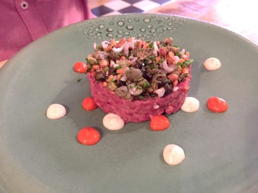 Je vais commencer en vous surprenant sans doute, mais pour l’instant le restaurant où j’ai le mieux mangé à Knokke… C’est un restaurant de viande ! Enfin, ça l’était jusqu’à il y a peu, vu que l’ancien grill Brasa, qui était le deuxième restaurant du restaurant étoilé Cuines,33 juste à côté (voir ci-dessous), a depuis quelques années changé de concept. Il s’appelle à présent Más Brasa, avec un nouveau chef, Frederik Boussy, qui quitte le Cuines,33 pour lancer son propre concept.