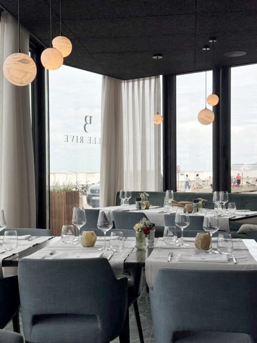 Vous avez peut-être remarqué que ces dernières années, de nombreux nouveaux bâtiments ont poussé à Knokke. C’est dans l’un de ceux-ci, même pas encore entièrement terminé lors de ma visite, que s’est établi le nouveau restaurant Belle Rive, juste en face de la Plage Beaufort.