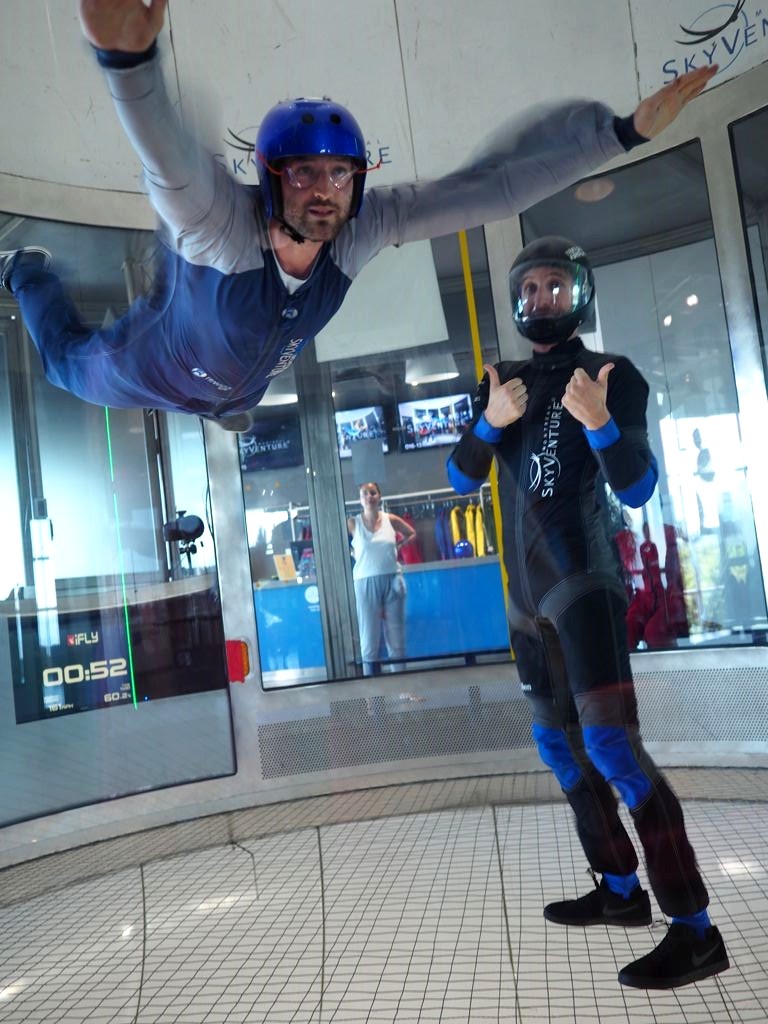 C’est donc Monsieur qui a donné de sa personne pour tester pour vous cette activité ! Et il a adoré : « Pour ceux qui ont le vertige ou peur de la vitesse, sachez qu’on ne se sent pas tomber (puisqu’il n’y a pas d’accélération pendant la chute). Par contre, on a vraiment l’impression de voler ! Je conseille cette expérience en simulateur à ceux qui ont peur de se lancer ! ». Après plusieurs petites envolées d’une minute, je peux d’ailleurs confirmer qu’il avait déjà pris ses aises ! Assez que pour pouvoir s’envoler en fin de session avec l’instructeur pour quelques figures en tandem. Le clou du spectacle !