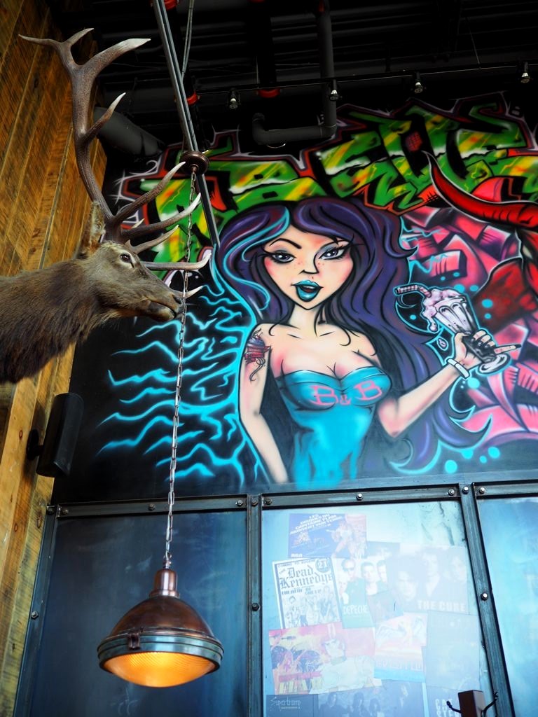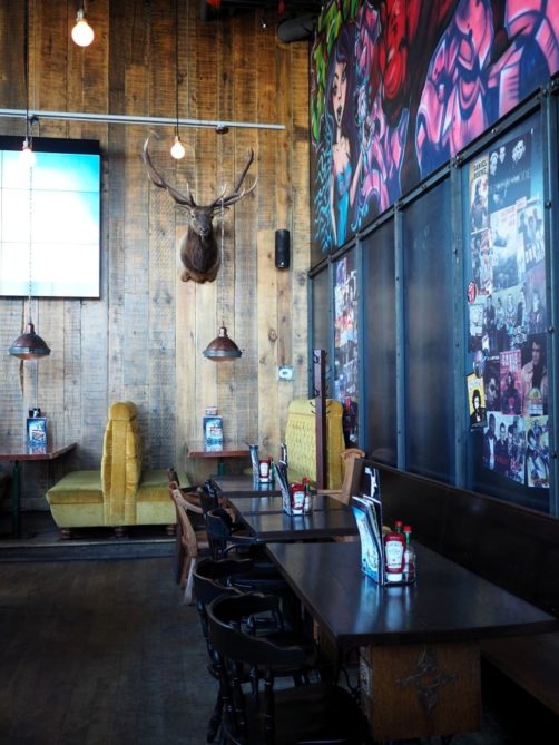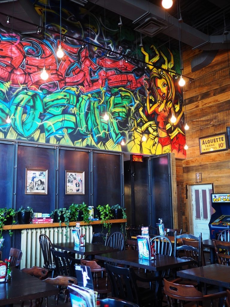 Situé dans le grand centre commercial Centropolis, La Belle & La Boeuf Burger Bar fut notre coup de cœur à Laval ! Un super concept avec une décoration nostalgique, allant des années 60 aux années 90. D’ailleurs, si vous leur apportez un magazine vintage original, vous recevez un lait frappé alcoolisé gratuitement ! Poussé jusqu’au bout, le concept !