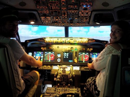 Connaissant le vrai aéroport, je peux vous dire qu’on s’y serait vraiment cru ! La simulation de l’extérieur était vraiment très réussie. On s’est aussi amusés à atterrir à Bruxelles, beaucoup moins difficile cet atterrissage là ! Monsieur dans le rôle de pilote et moi dans celui de copilote, nous avons plutôt bien assurés je dois dire : on a pas crashé l’avion une seule fois…