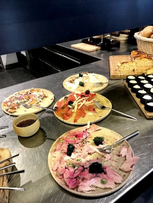 Le concept est plutôt sympa puisque l’on commence par un énorme buffet de préparations essentiellement froides : charcuteries, poissons fumés (comme dans les pays nordiques), légumes, et petites préparations variées de saison pleines de saveurs.