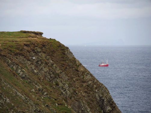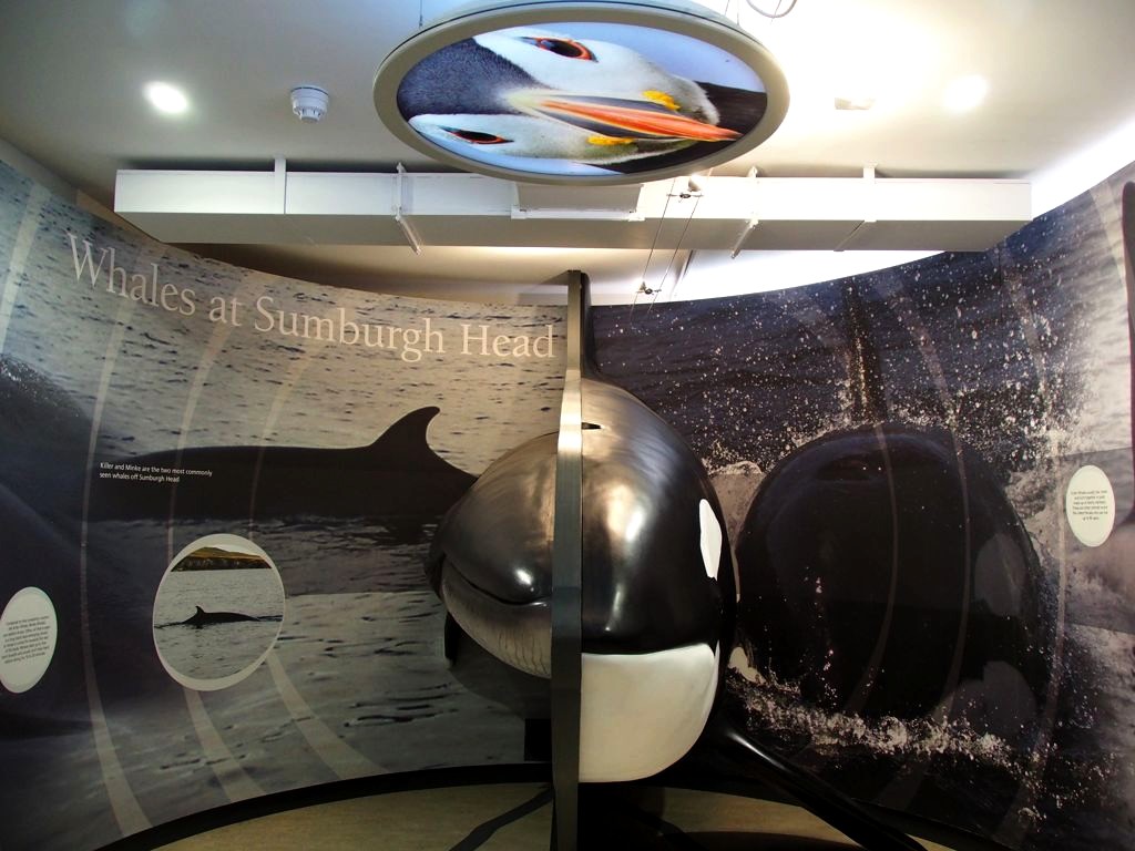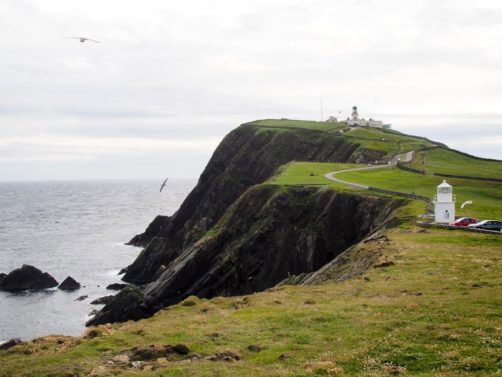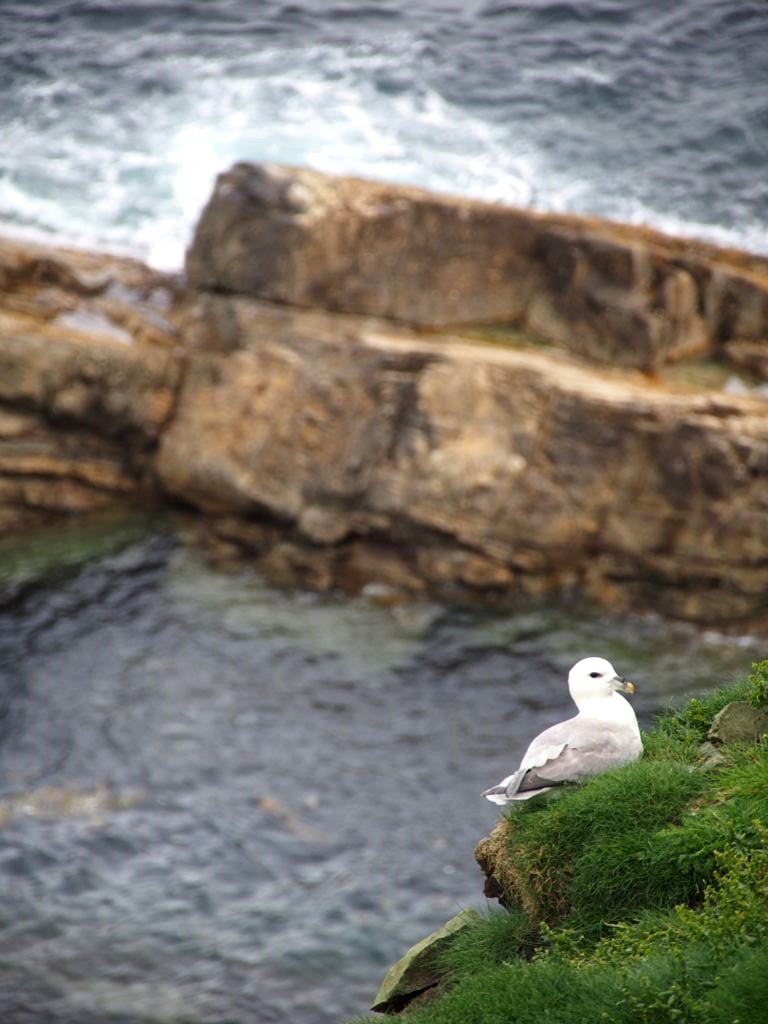 Après quelques minutes de route à travers champs et moutons, nous voici déjà à l’extrémité sud de Mainland, Sumburgh Head Lighthouse. Outre le phare, on trouve dans cet endroit assez populaire auprès des touristes un Visitor Center, un petit musée et un tea room avec vue ! La réserve naturelle qui se trouve autour est l’un des meilleurs endroits pour voir les macareux (puffins) en saison. Raté pour nous, les meilleurs mois pour les voir sont de mai à juillet.