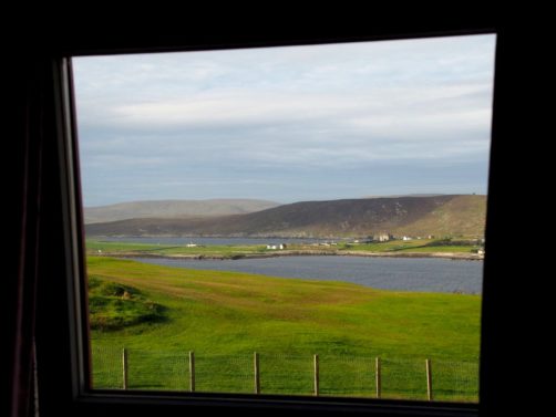 C’est dans cet hôtel, le plus central à Lerwick, que nous avons passé trois nuits. The Grand Hotel est l’hôtel British classique typique, avec sa moquette, ses dorures et ses chambres un peu vieillottes, mais tout de même très propres. Le petit-déjeuner complet fut une bonne surprise, dans une agréable salle avec vue sur le port. On pourrait sans doute trouver mieux, mais ça a fait l’affaire. C’est l’hôtel frère du Queen’s Hotel, où nous avons été manger le premier soir. Je suppose donc que la cuisine de leur restaurant doit être similaire.