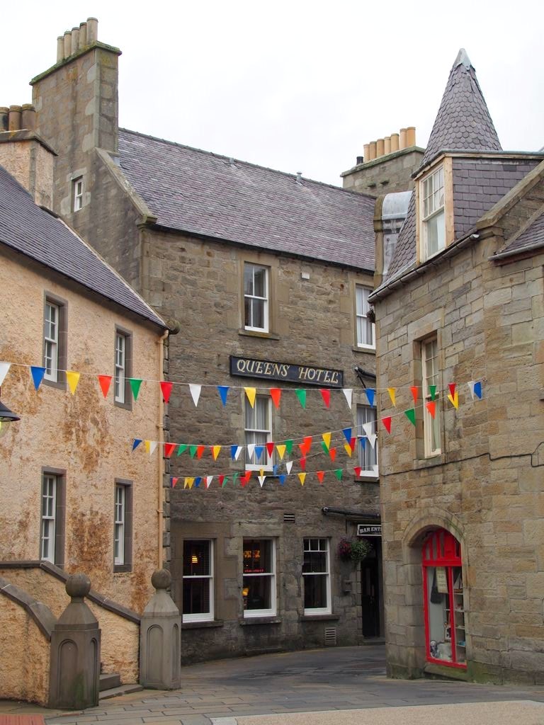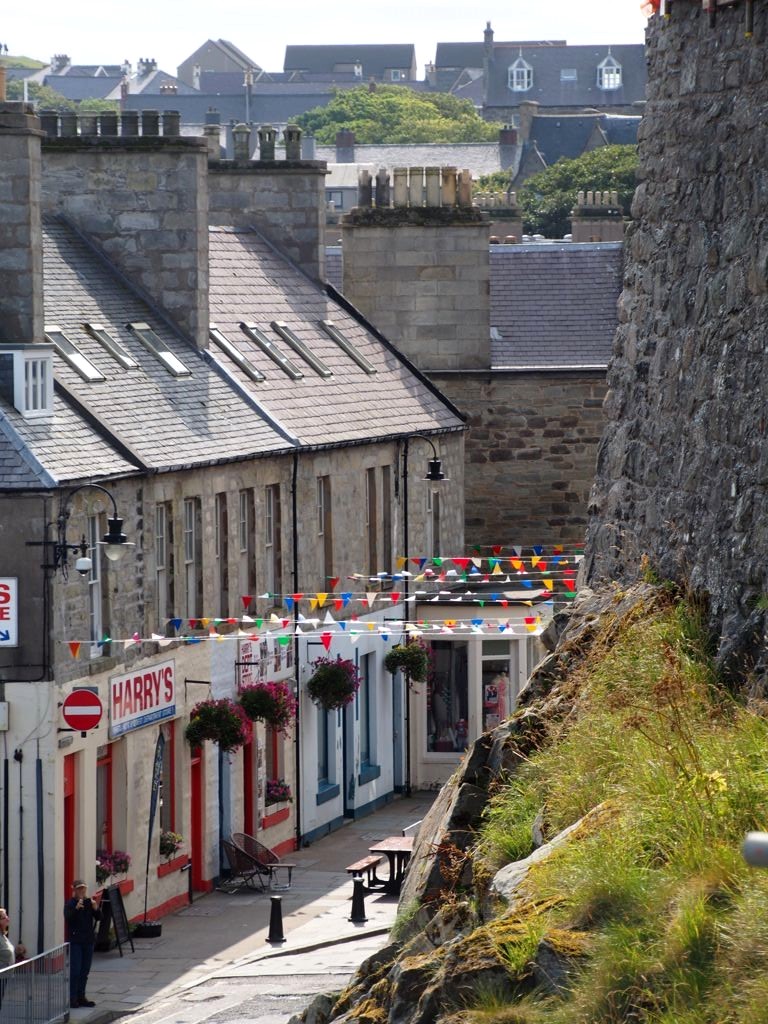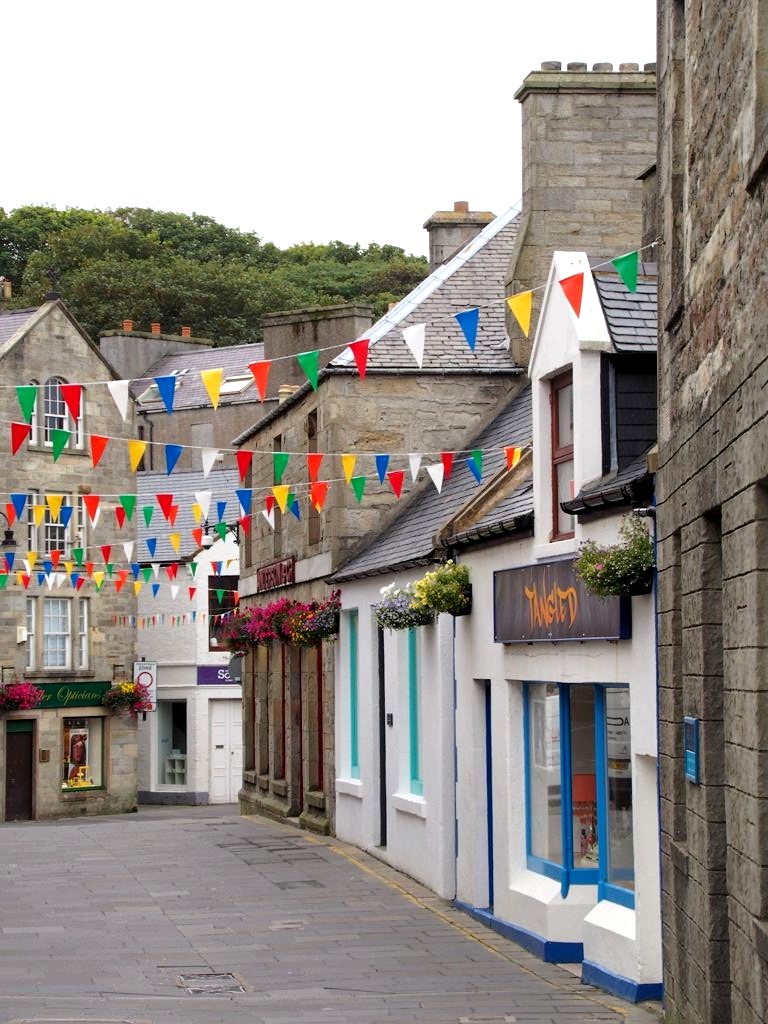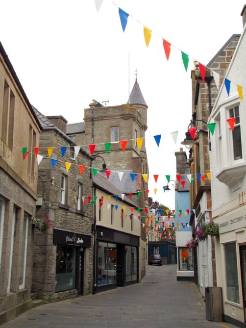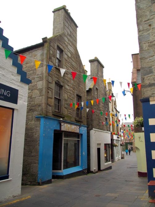 Même si vous n’êtes pas très pull en laine, je vous conseille tout de même de vous balader sur Commercial Street, la rue commerçante de Lerwick, hyper photogénique avec ses vieilles maisons et ses petits drapeaux multicolores.