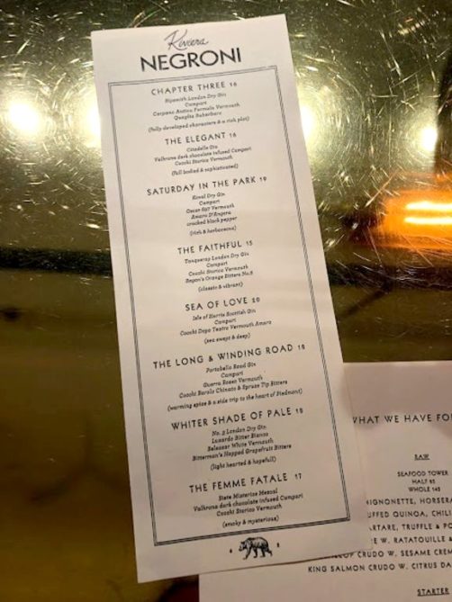 Je vous parlais du Riviera dans mes bonnes adresses restaurants, je vous en reparle ici puisque le bar à cocktails du restaurant est également très réputé. La spécialité du barman est le Negroni, qu’il prépare en pas moins de 8 variantes, mais vous trouverez aussi d’autres classiques parfaitement exécutés. Avec également, pour les amateurs, une belle sélection de whiskeys et de gins d’Amérique du Nord.