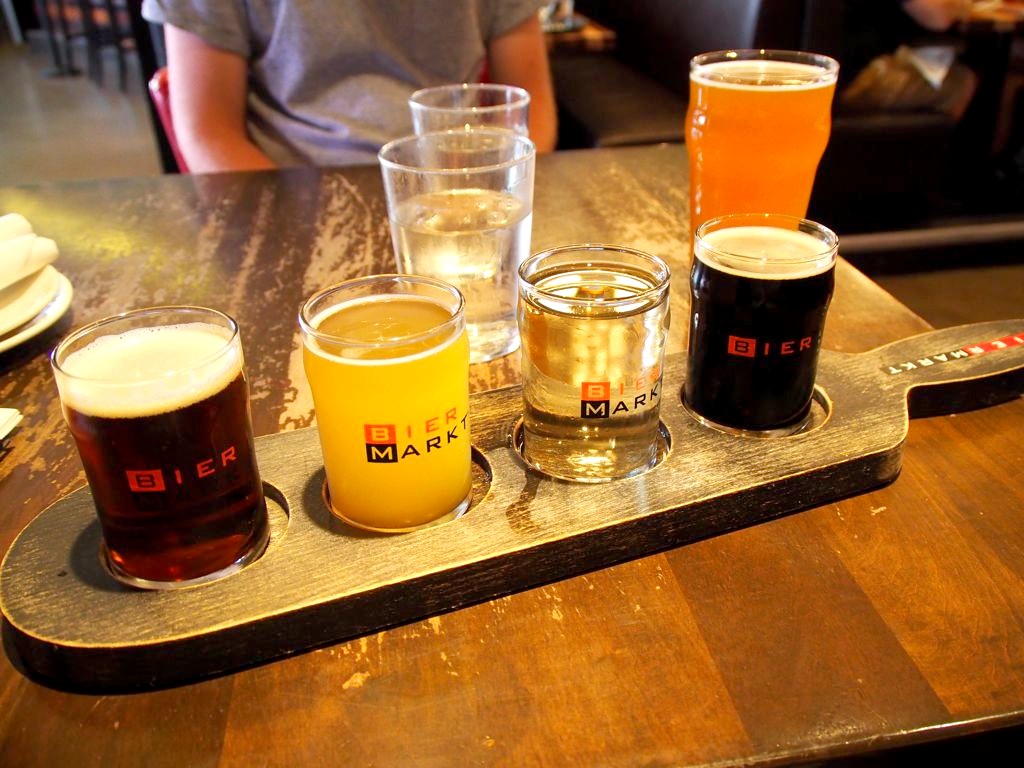 Si vous n’avez pas le temps – comme nous – de vous rendre jusqu’à l’une des brasseries artisanales d’Ottawa, vous pouvez déguster les productions locales dans plusieurs restaurants du centre-ville. Par exemple, le Bier Markt qui propose un choix de 150 bières venues de 30 pays, avec une belle sélection de bières d’Ontario. Vous pouvez les découvrir avec le Beer Flight (planchette de dégustations) Ontario Craft dédié aux bières de la région.