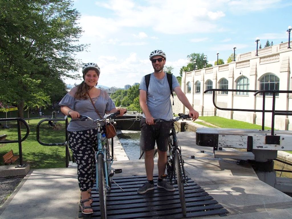C’est la première activité que nous avons faite à notre arrivée à Ottawa, et ce fut vraiment une excellente introduction à la ville, qui nous a permis en 3 heures de temps de visualiser les différents endroits que nous allions revisiter à pied plus tard, tout en découvrant directement plusieurs bonnes adresses, comme le marché fermier de Lansdowne, que nous avons rejoint après avoir longé le canal Rideau en vélo (balade hyper agréable). Nous y avons dégusté un délicieux grilled cheese (au stand de Castor River Farm) et du très bon beurre d’érable local (au stand de Garland Sugar Shack). Nous avons ensuite traversé les quartiers de Glebe et de Midtown.