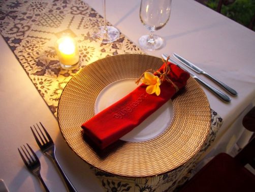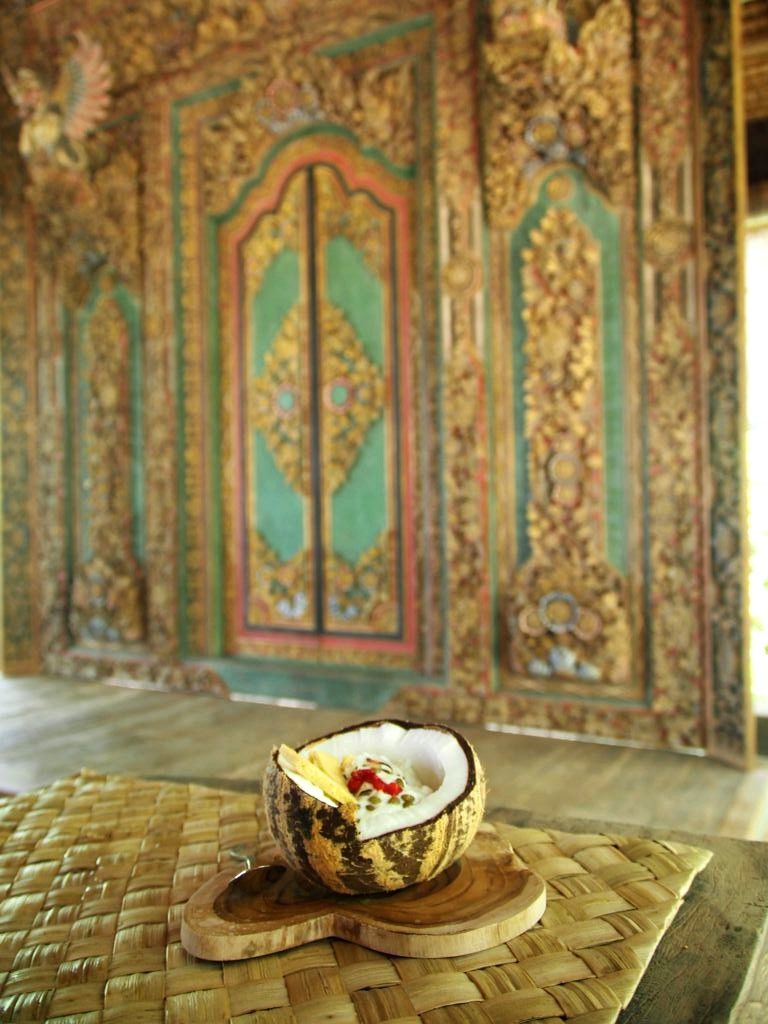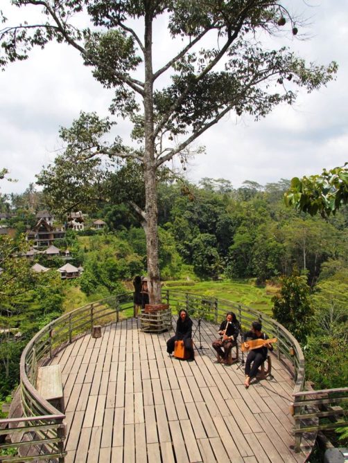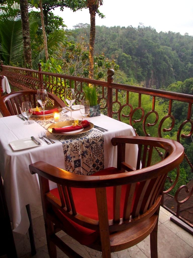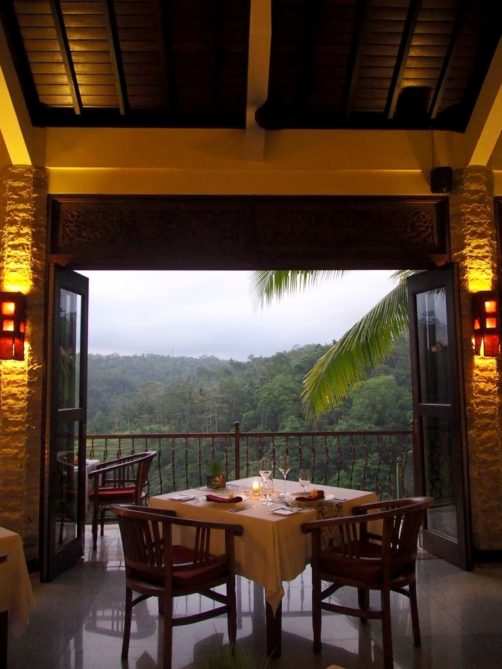 Que vous décidiez ou non de loger dans cet hôtel (vérifier les tarifs actuels ici), je vous recommande de vous y rendre pour manger au moins une fois. Le restaurant, avec une vue magnifique sur la forêt tropicale, les rizières (et la Ayung River tout en bas), propose une cuisine balinaise gastronomique et haut de gamme. Ils ont même une cave à vin ! Le chef du restaurant fait même partie de la Chaîne des rôtisseurs ! Une petite pépite qui mériterait d’être plus connue !