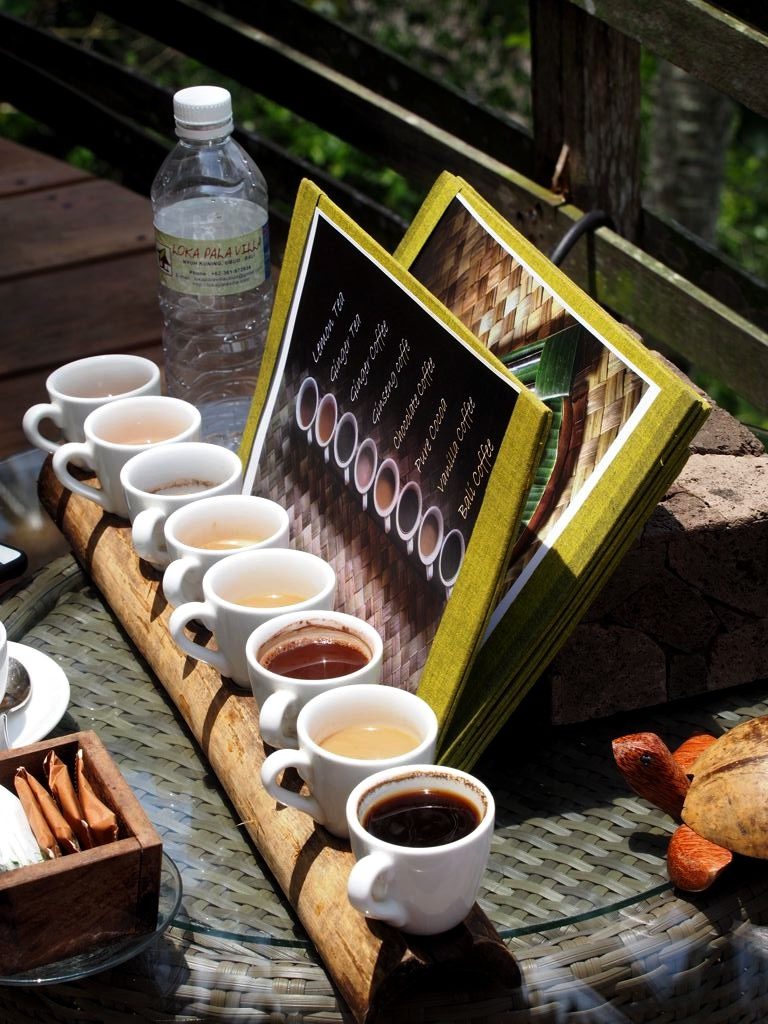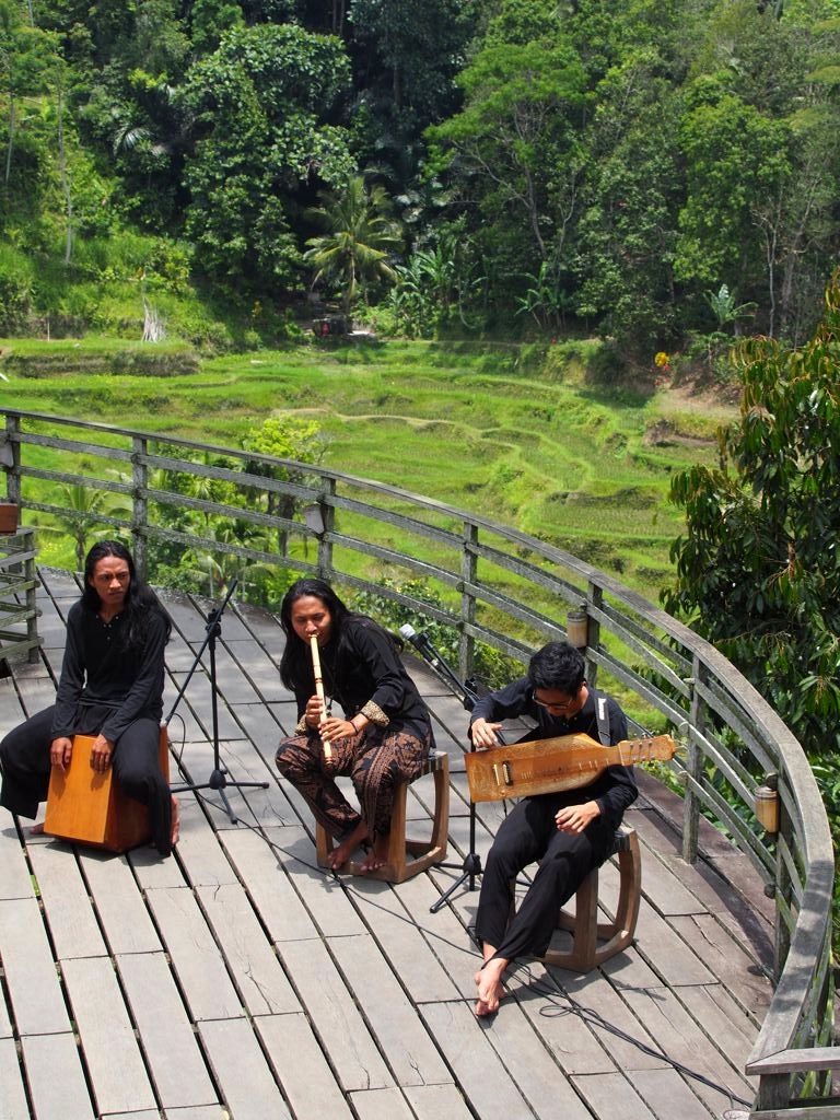 Lors de notre visite, un groupe de musiciens jouaient une musique envoûtante. Je pense que ça a beaucoup contribué à me faire autant aimer cet endroit. Elle résonnait jusque dans les rizières, c’était magique. L’entrée est libre, mais les activités sont payantes. Le seul point négatif de l’endroit, c’est qu’ils produisent le fameux Kopi Luwak, le café le plus cher au monde, récolté dans les excréments de civettes. Je n’aime pas voir ces pauvres animaux en cage, et je ne vous recommanderai donc pas de le goûter. Les autres cafés sont tout aussi bons et n’impliquent pas la mise en cage d’animaux.