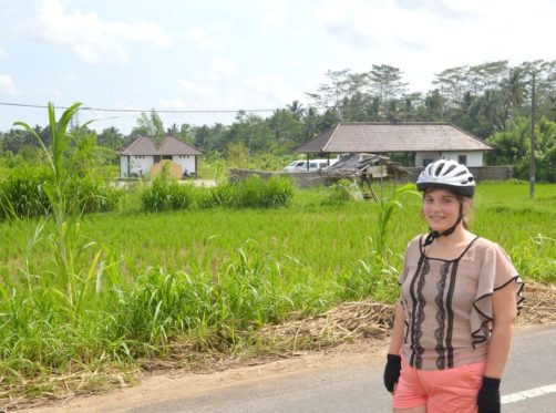 Une autre activité que j’ai beaucoup aimé à Ubud est notre balade en vélo avec un guide dans les rizières autour d’Ubud. A nouveau, je vous recommande chaudement l’expérience ! Le parcours est essentiellement en descente, donc c’est vraiment accessible à tous. Le guide se charge de vous donner des petites anecdotes intéressantes pendant les arrêts, et le chauffeur suit de loin en cas de problème technique avec les vélos.